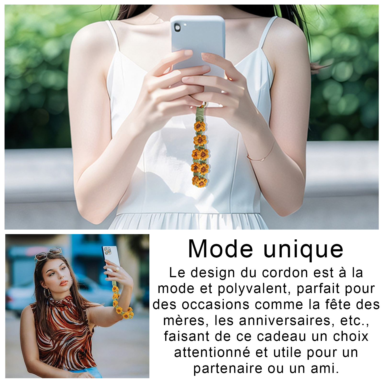 ordon 18x2,3cm lanière tressée pour téléphone portable porte-clés motif marguerite pendentif clé fleur confortable cadeau idéal