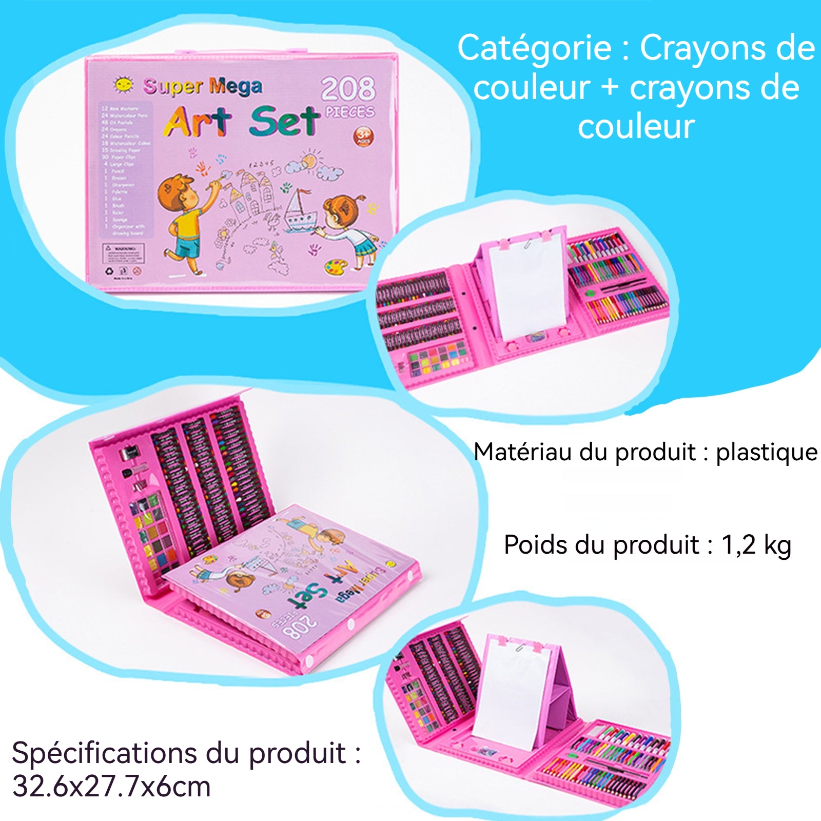 rayons de couleur 208 couleurs 40,5 x 31 x 5,2 cm coffret cadeau de pinceaux pour enfants ensemble de stylos aquarelle art set