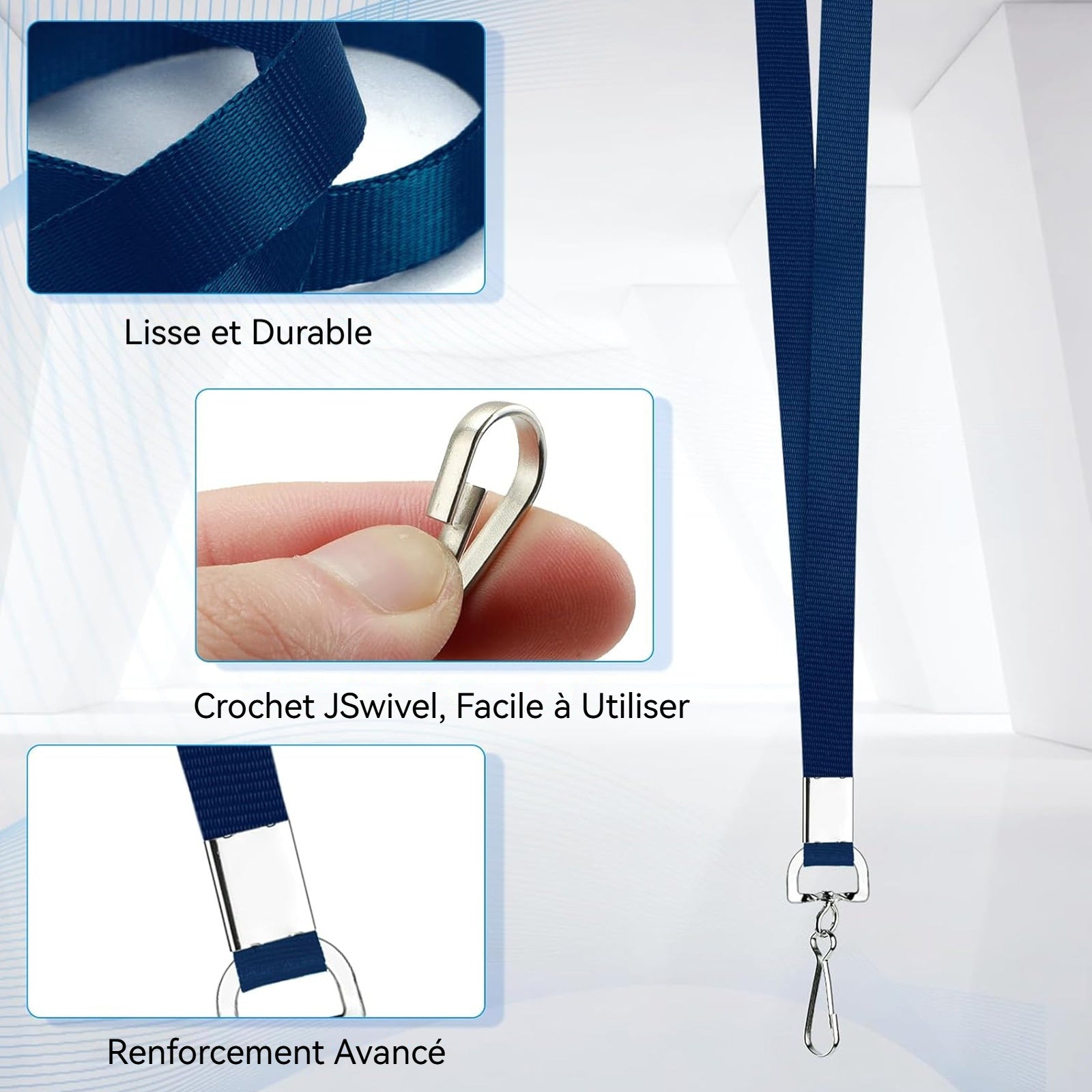 Tours de cou 100pcs Longueur 45cm Swivel Hook Clip Convient pour badge Carte d'identité de travail Carte d'identité d'étudiant