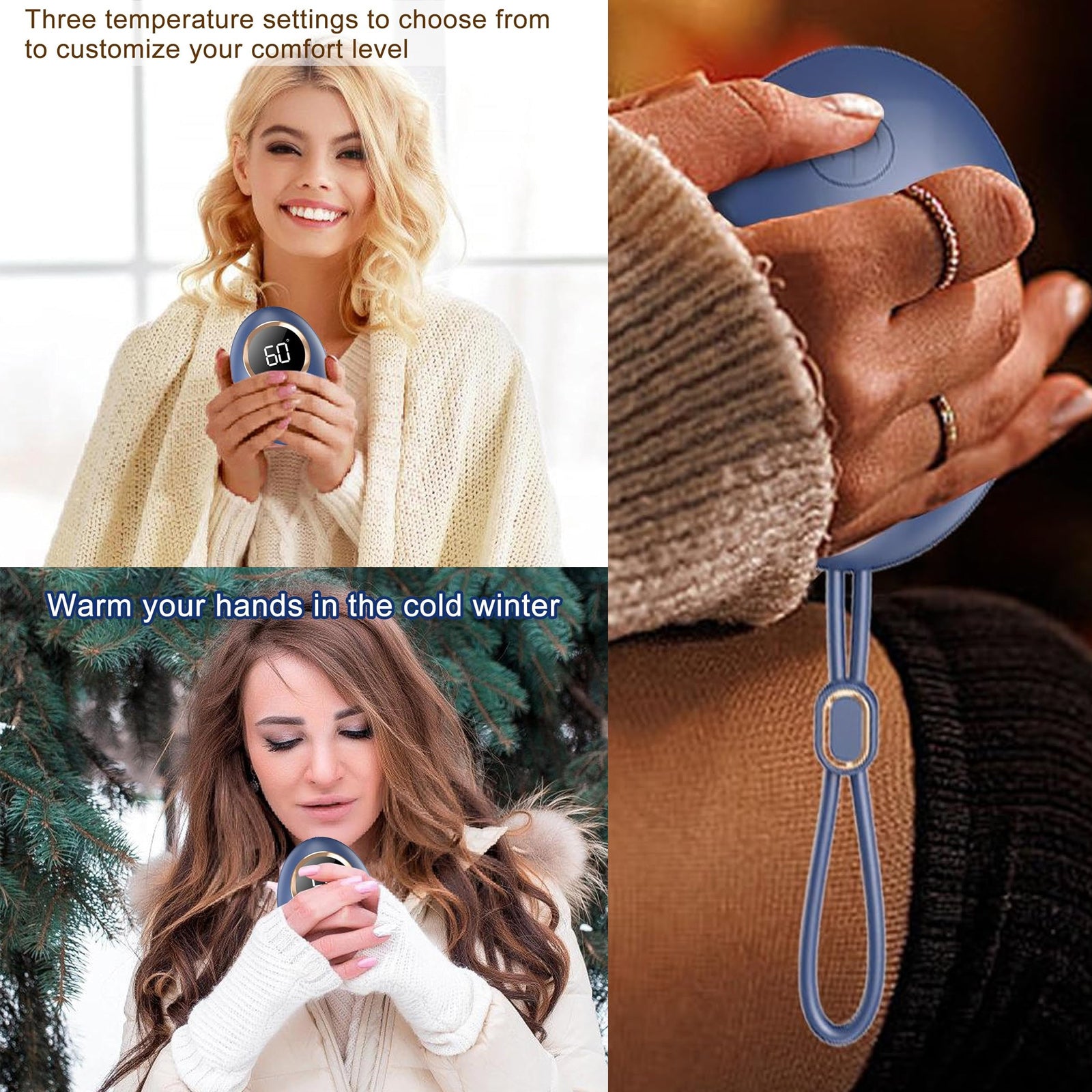 Chauffe main rechargeable 3000mah LED écran SB recharge 3 niveaux de réglables protection contre la surchauffe bleue chauffe-mains