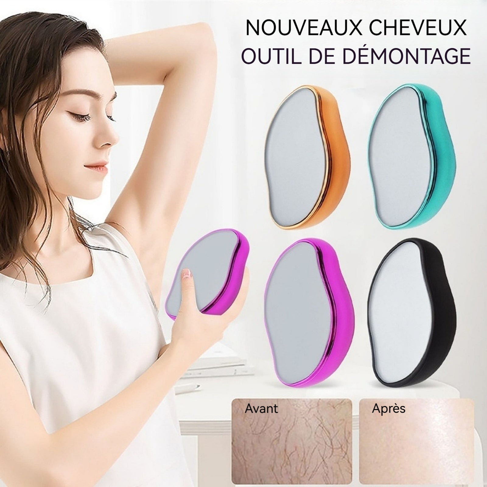 5. Large gamme d'applications : Que vous soyez en vacances à la mer, en train de vous détendre chez vous, ou que vous portiez des vêtements courts dans la rue pendant l'été, le décolorant en cristal est le choix idéal. Cet outil d'épilation indolore est compact et facile à transporter lors de vos voyages, et il peut également être utilisé comme accessoire dans votre sac à main.