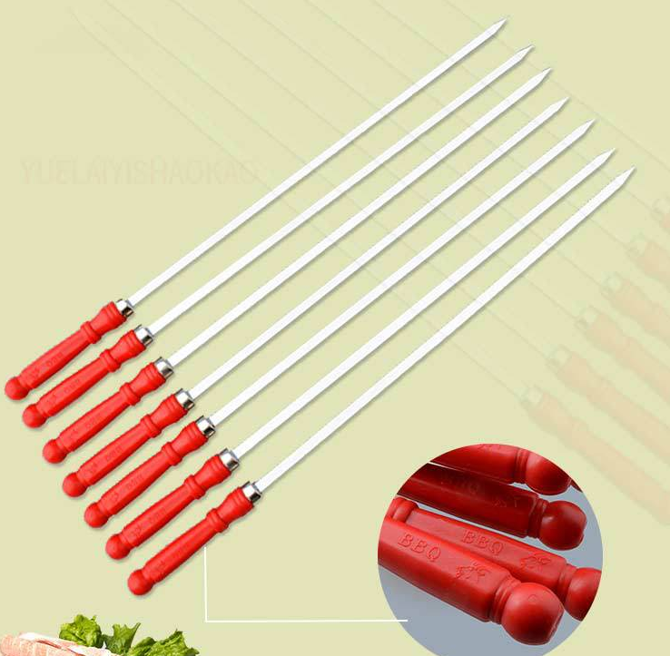 Signe plat en acier inoxydable Longueur 39cm Poignée en plastique Signe de Barbecue Grande aiguille de Barbecue Brochettes