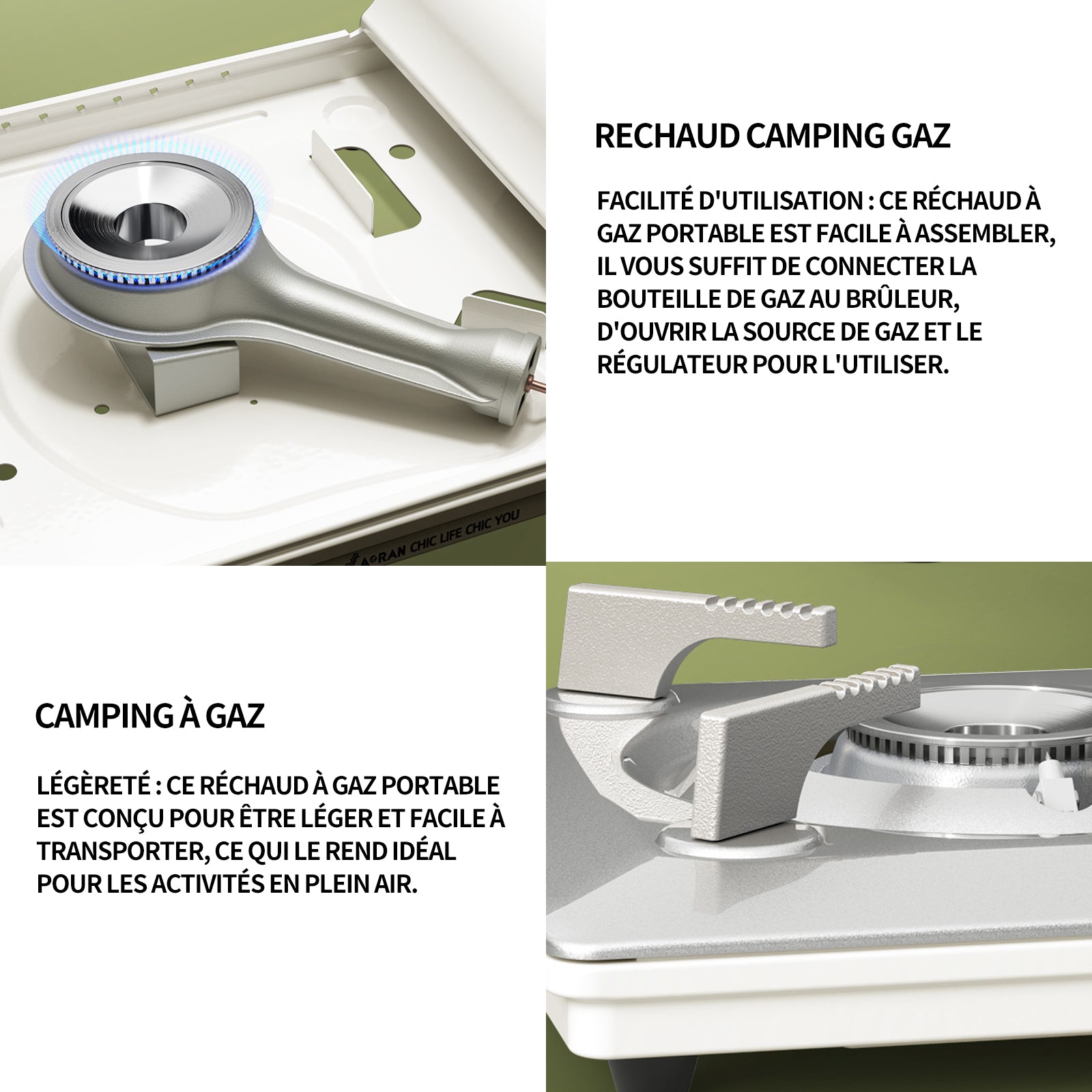 3. Légèreté : Ce réchaud à gaz portable est conçu pour être léger et facile à transporter, ce qui le rend idéal pour les activités en plein air.