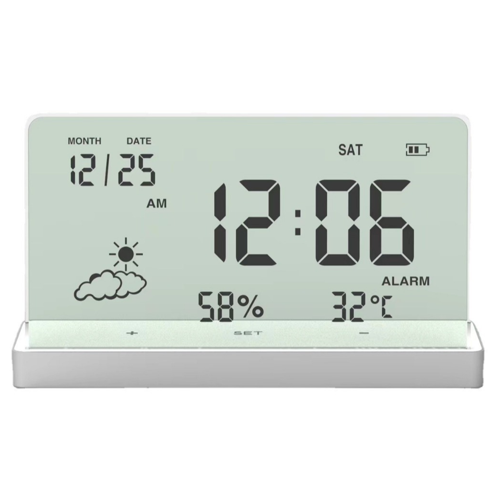 Réveil 13x7,5cm 0,12kg écran acrylique transparent date/température/humidité base en alliage d'aluminium batterie longue durée