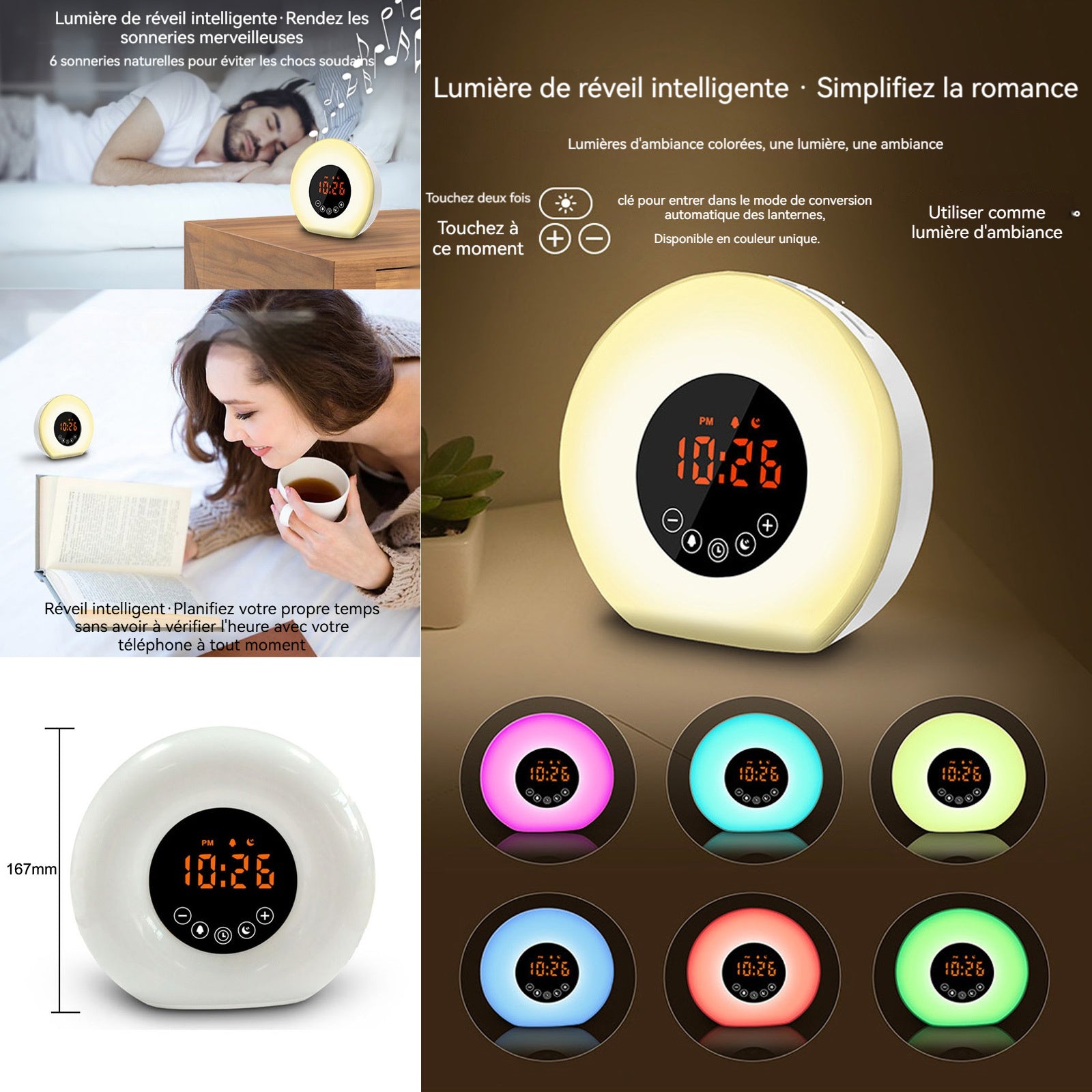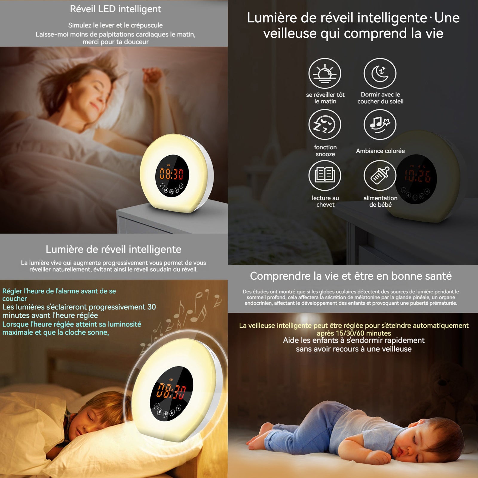 Réveil lumière du jour avec fonction veilleuse simuler le lever et le coucher du soleil avec bluetooth tf USB jouer de musique