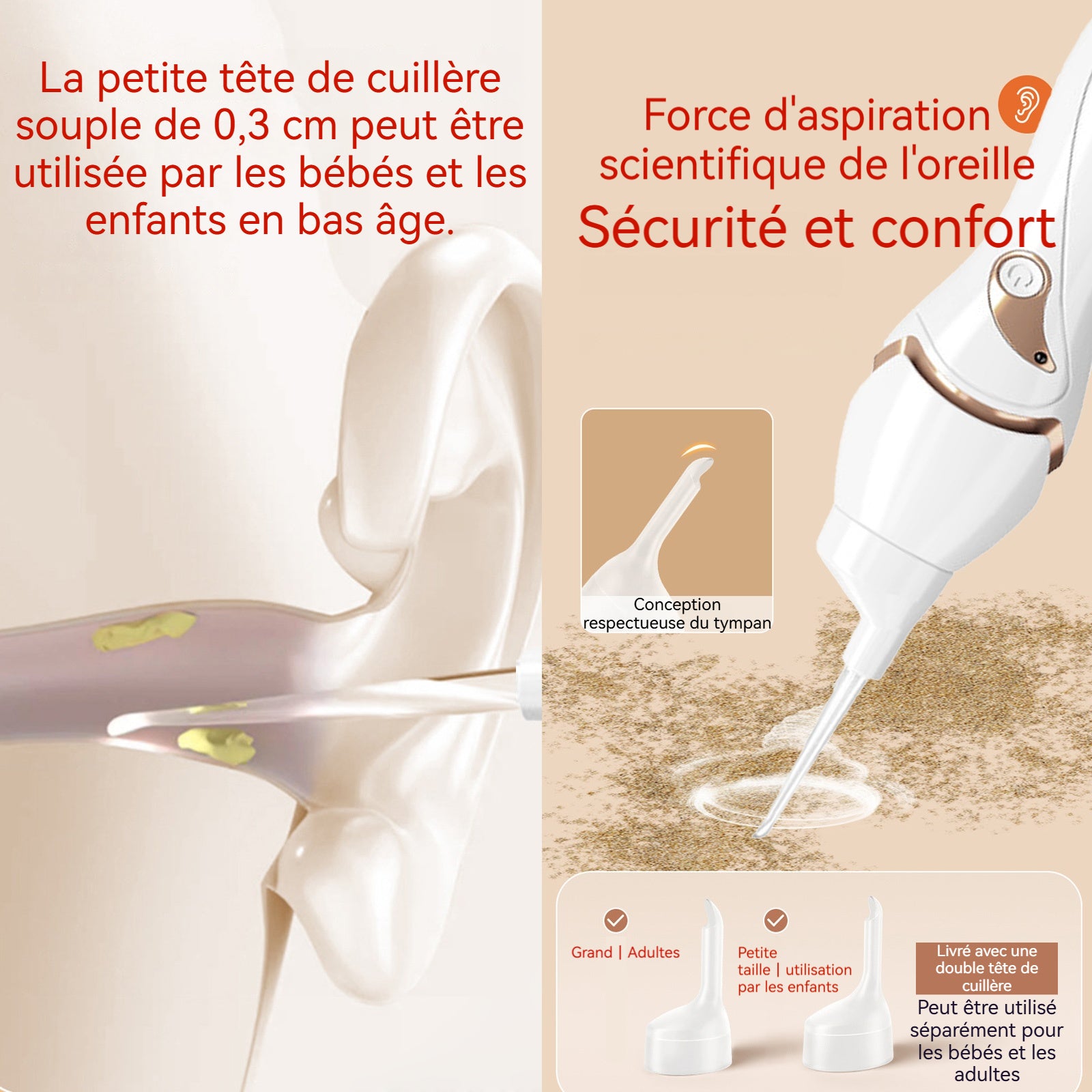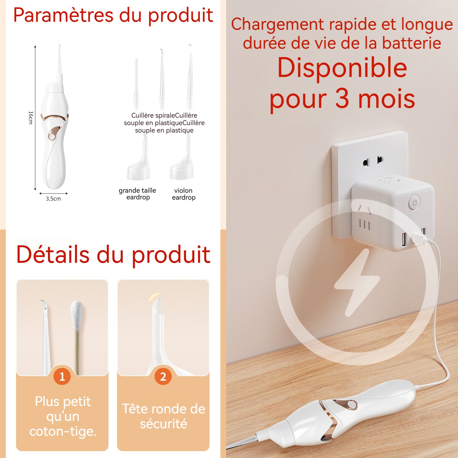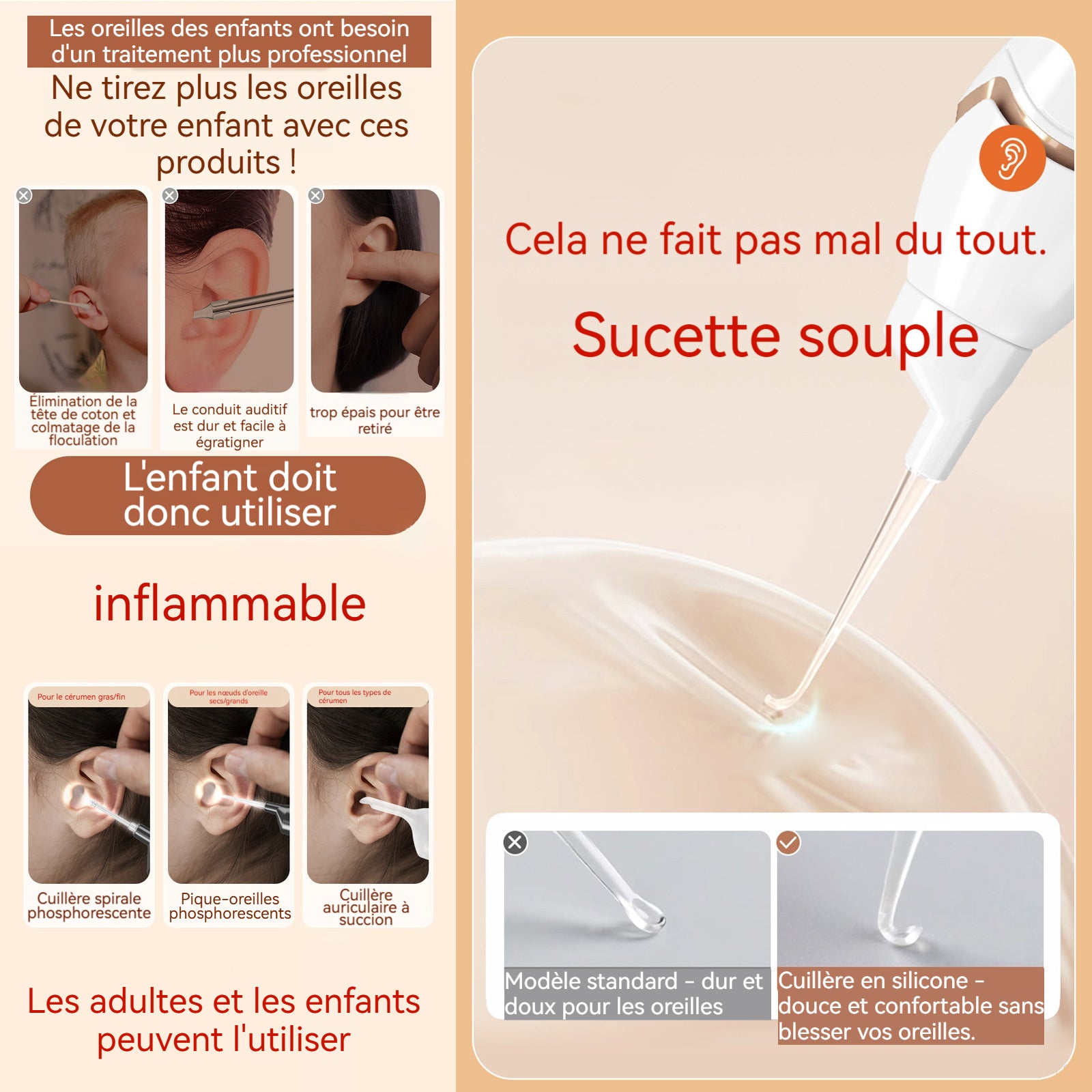 3. Plusieurs méthodes de nettoyage : aspirez doucement ou enroulez précisément le cérumen. Nos appareils de nettoyage des oreilles combinent la dernière technologie avec une conception ergonomique pour assurer un nettoyage efficace et sûr.