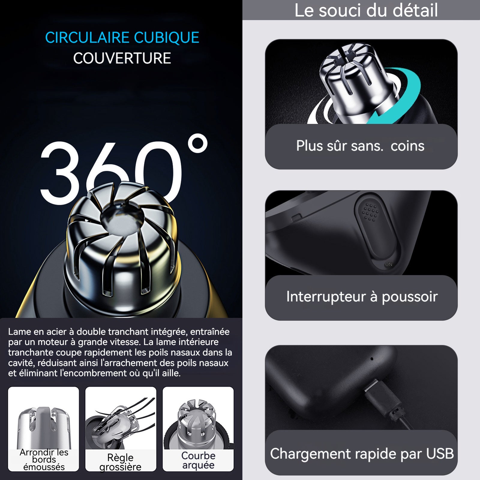 Tondeuse nez 100mAh mini professionnelle tondeuse nez oreilles tête arrondie à 360 degrés coupe efficacement les poils du nez