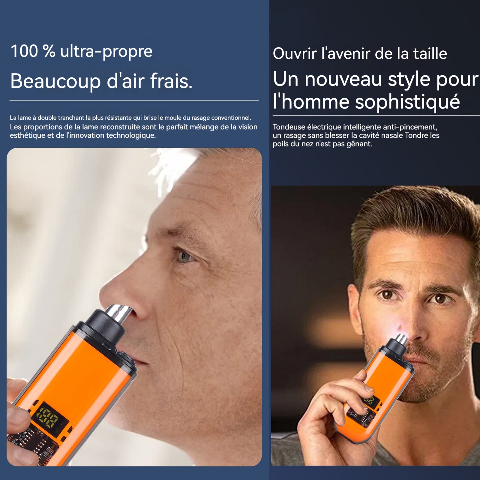 1. Design étanche : Le coupe-nez électrique est équipé d'une fonction étanche, ce qui facilite le lavage à l'eau après utilisation, garantissant propreté et hygiène.