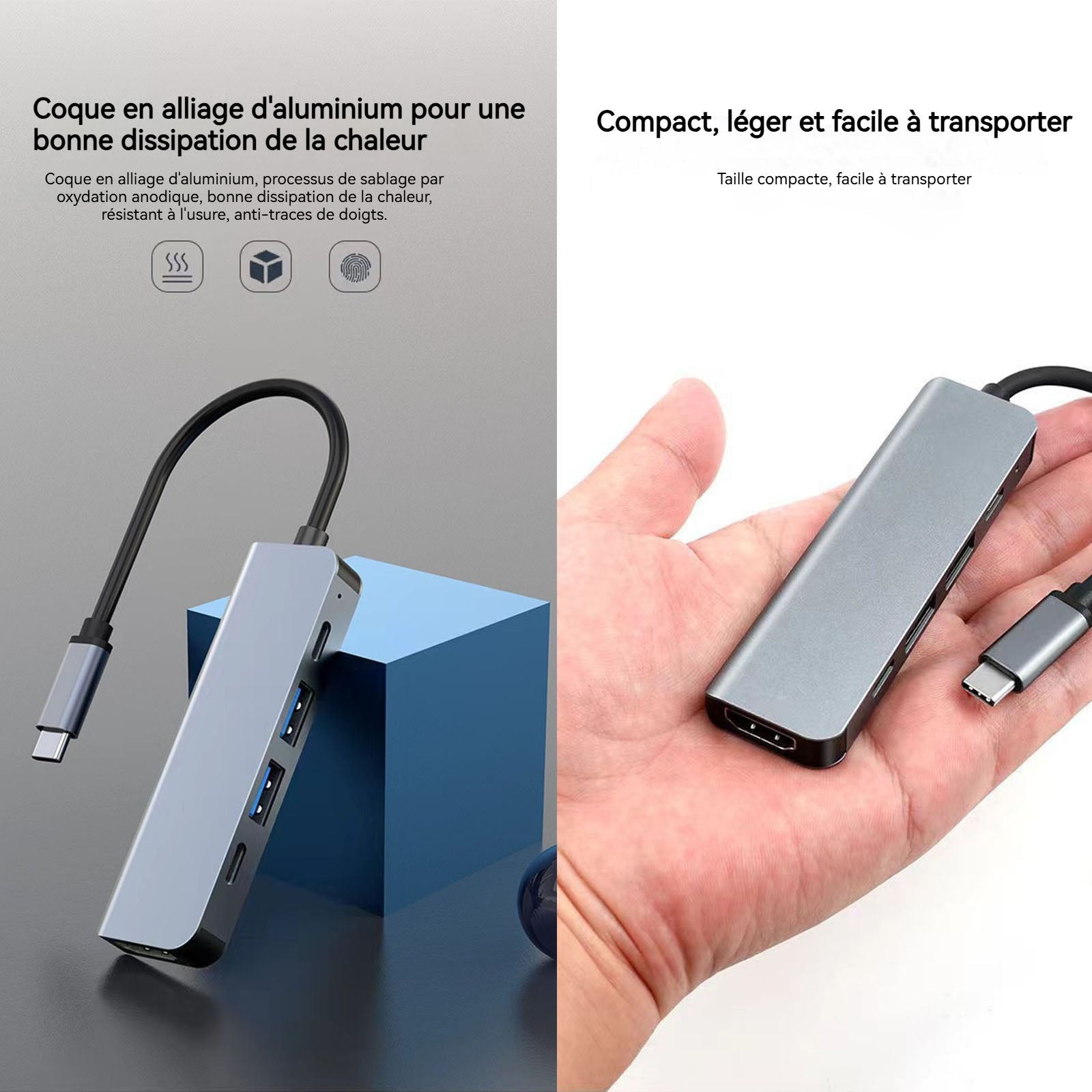 Station d'accueil USB3.0 4 en 1 Transmission efficace HDMI Matériau en alliage d'aluminium Multifonctionnel portable Adaptateur