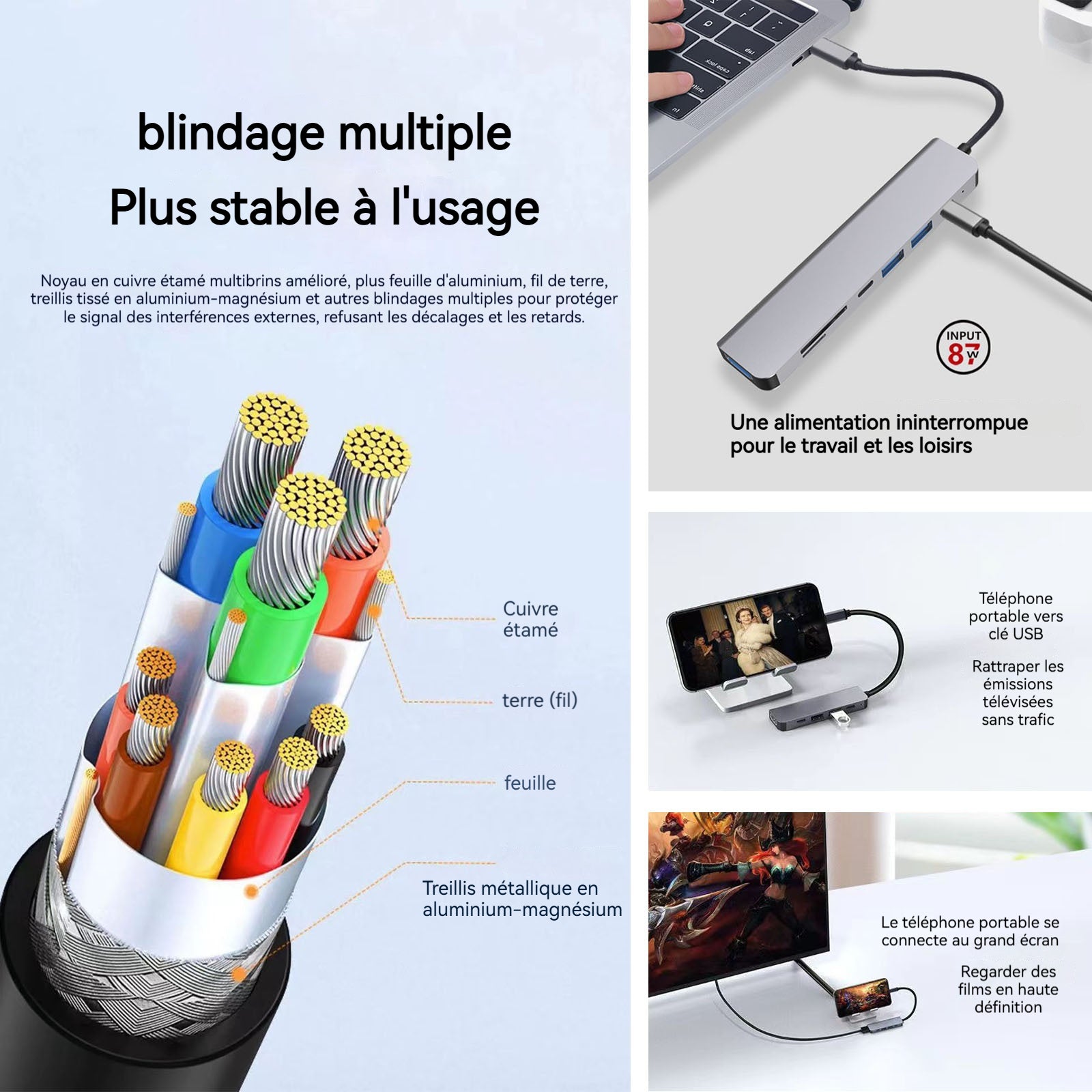 4. Facilité d'utilisation: Ce produit dispose d'un port Type-C réversible, sans besoin de pilote, supporte le branchement à chaud, se connecte immédiatement et est facile à transporter.
