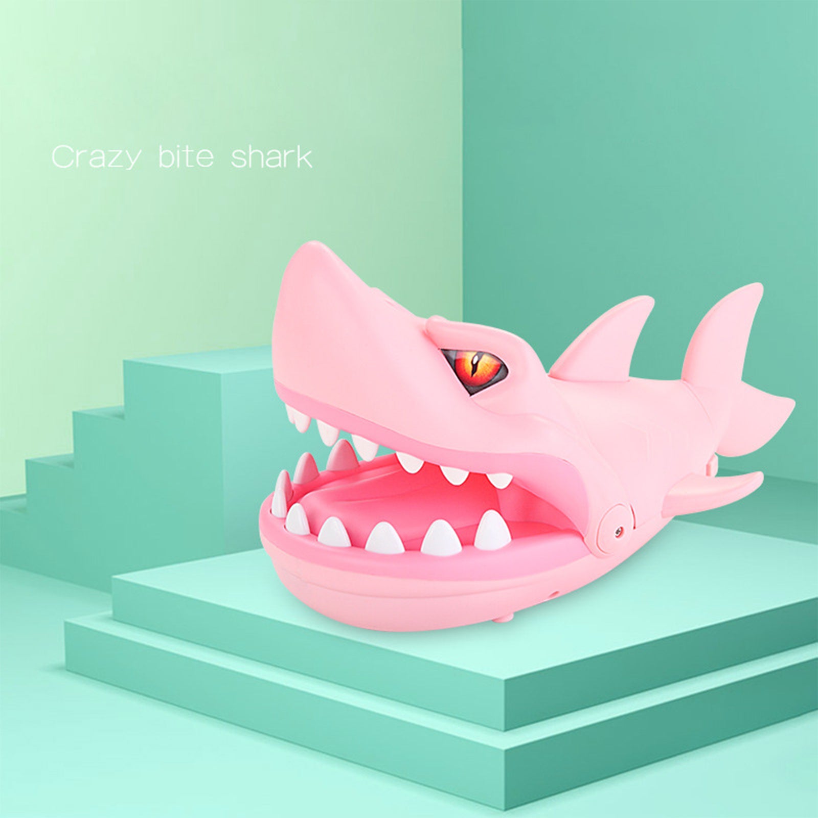 TD® Grand requin qui se mord les doigts avec musique, morsure, pression des dents, jouet pour toute la personne pour enfants, rose