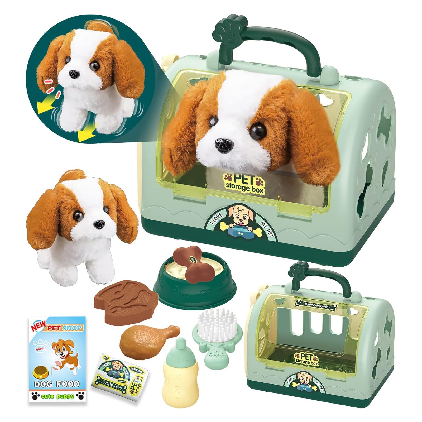2. Comme un vrai chiot : des aboiements et des gestes réalistes apporteront plus de plaisir à vos enfants. Et il est également livré avec un chenil portatif pour une entrée et une sortie faciles à l'intérieur et à l'extérieur, et la porte latérale et les fenêtres du chenil peuvent être facilement ouvertes. Les jeux de soins pour animaux de compagnie peuvent réaliser le rêve des enfants d'élever des animaux de compagnie et accompagner les enfants à grandir heureux.