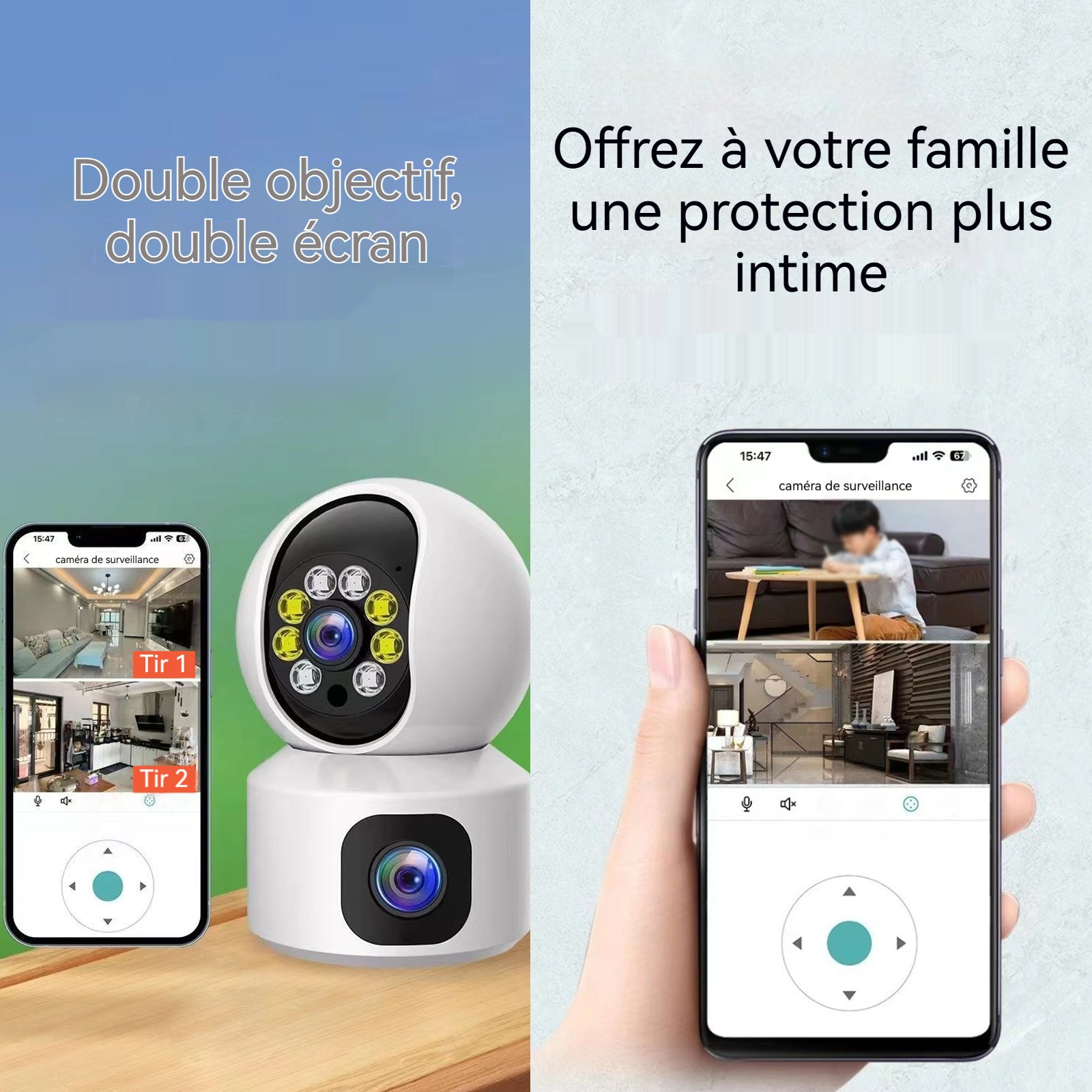 caméra surveillance à double 200w wifi 360 degrés audio bidirectionnel vision nocturne caméra de surveillance intérieure caméra