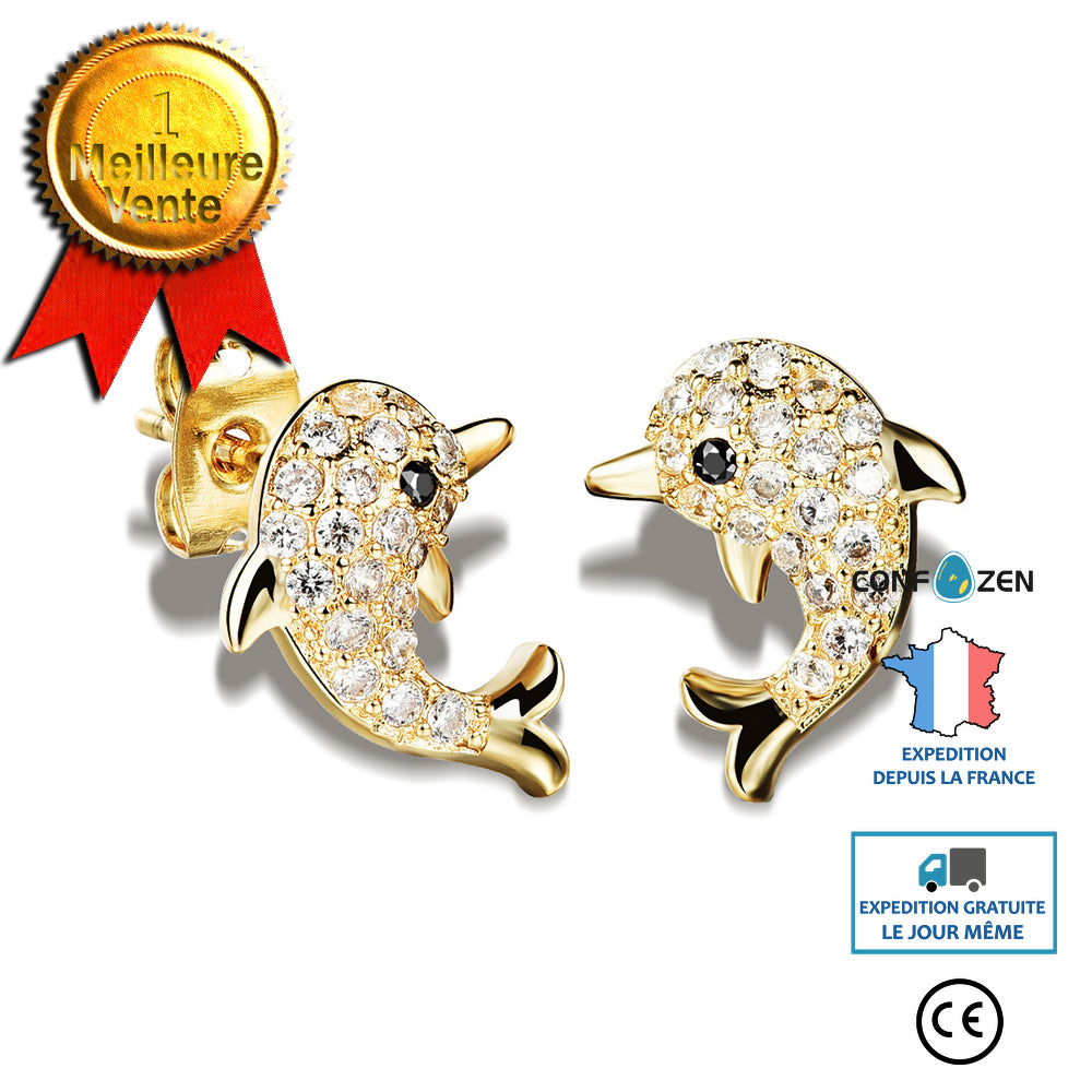CON® Boucles d'oreilles dauphins Bijoux pour enfants et adultes avec or micro incrusté Idée cadeau pour femmes anniversaires