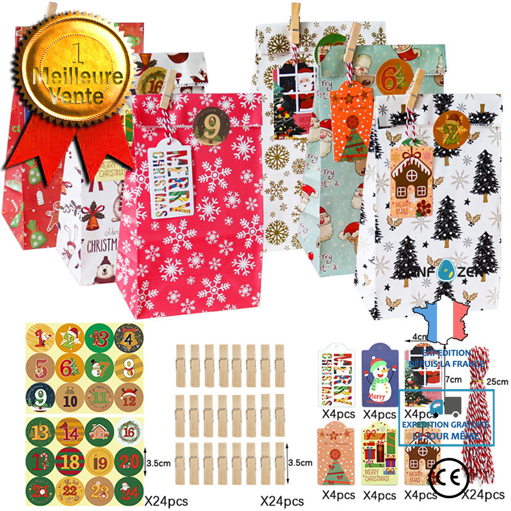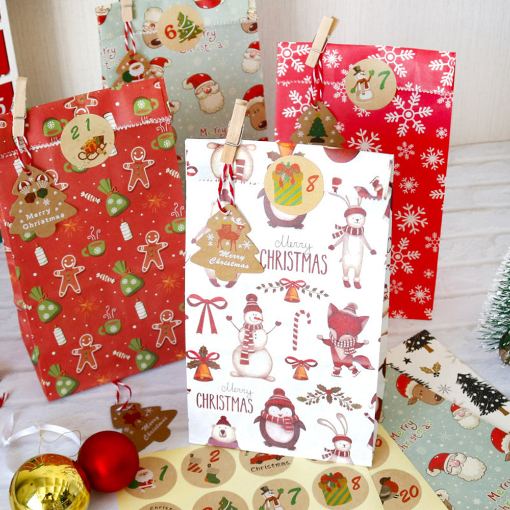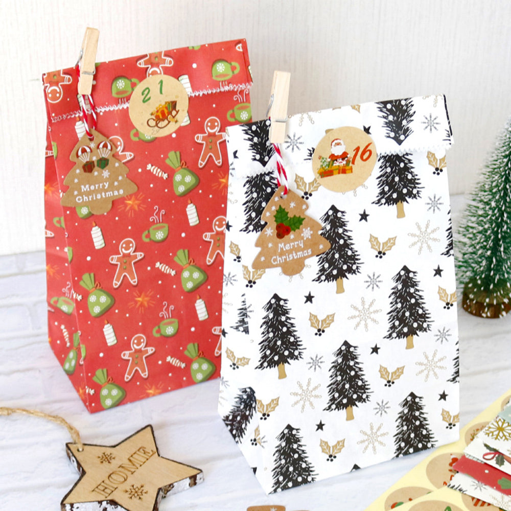 Ensemble de sacs en papier de Noël sac cadeau calendrier de l'avent numérique sac d'emballage de bonbons sac cadeau 24 ensemb