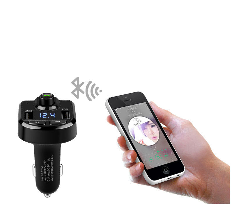 ·La couleur de ce produit est basée sur la première photo; · Nombre D'Interface De Sortie : 2 Avec USB ; ·Tension d'entrée : 20-30 V ; ·Tension de Sortie : 5V ; ·Origin : Guangzhou ; ·Output Interface : usb ; ·model : BT36 3.6A Car Bluetooth mp3 player ; ·Applicable charging range : Large and small cars ; ·Input voltage : 12-24 ; ·weight : 66g ; ·Product Size : 51*45*82MM ; ·Texture : ABS fire protection ;