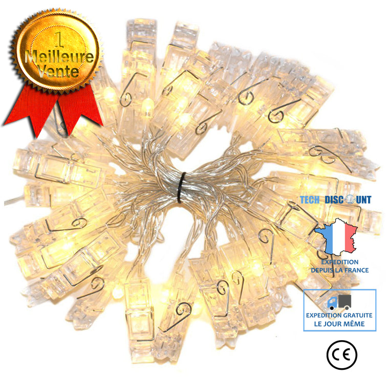TD® 20 LEDs Clips Photo Guirlande Lumineuse, LED Photo Clips Lumière Chaînes décoration pour Photos, Fête, Mariage (Blanc Chaud)