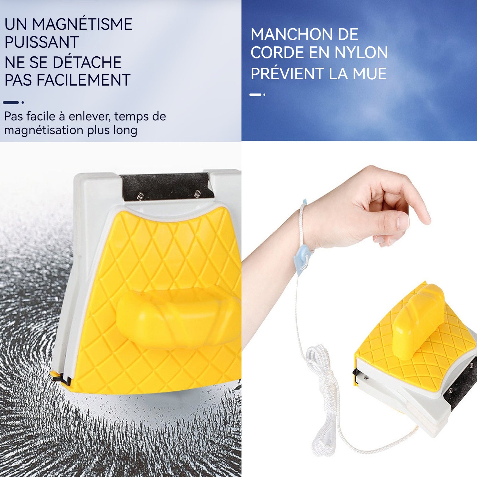 1. Magnétique double face : Cet outil de nettoyage du verre adopte une conception magnétique double face puissante, ce qui rend le nettoyage plus rapide et évite le risque de vous pencher.