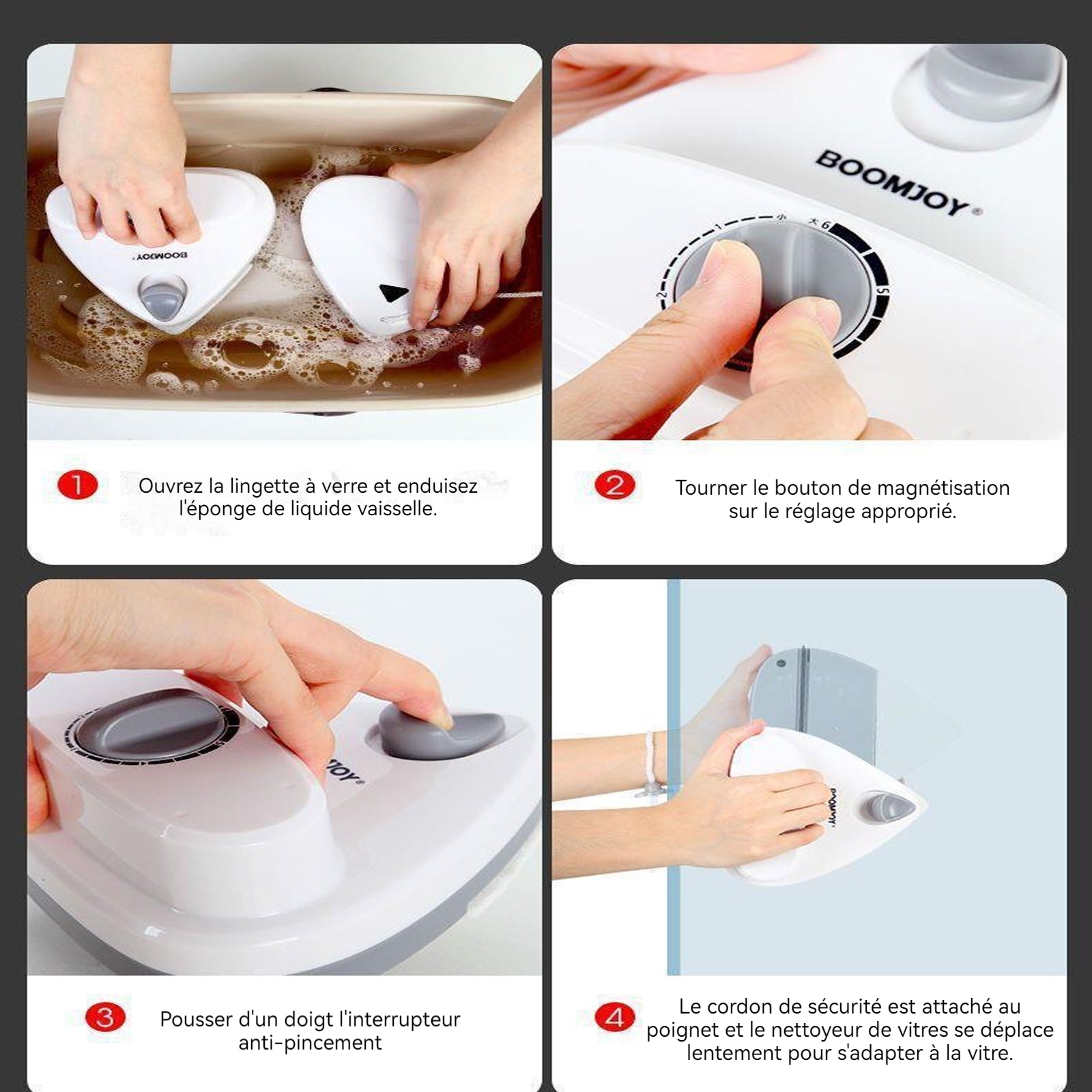 Nettoyeur de vitres magnétique double face 6 niveaux de réglage de l'aimant lave-vitre electrique pour double vitrage de 5 à 25mm