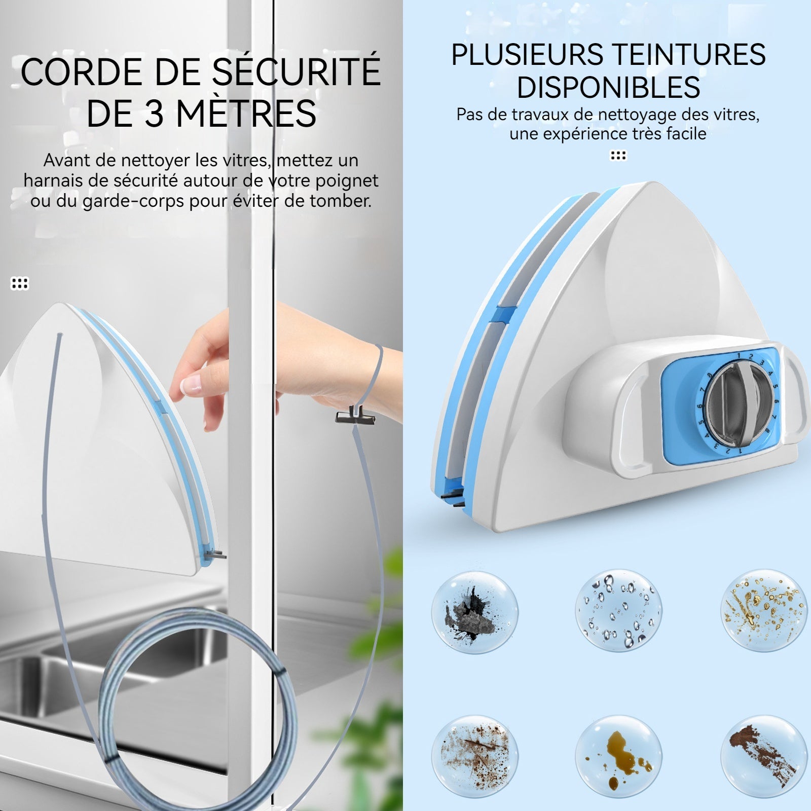 Nettoyeur de vitres magnétique double face 8 niveaux de réglage de l'aimant lave-vitre electrique pour double vitrage de 5 à 25mm