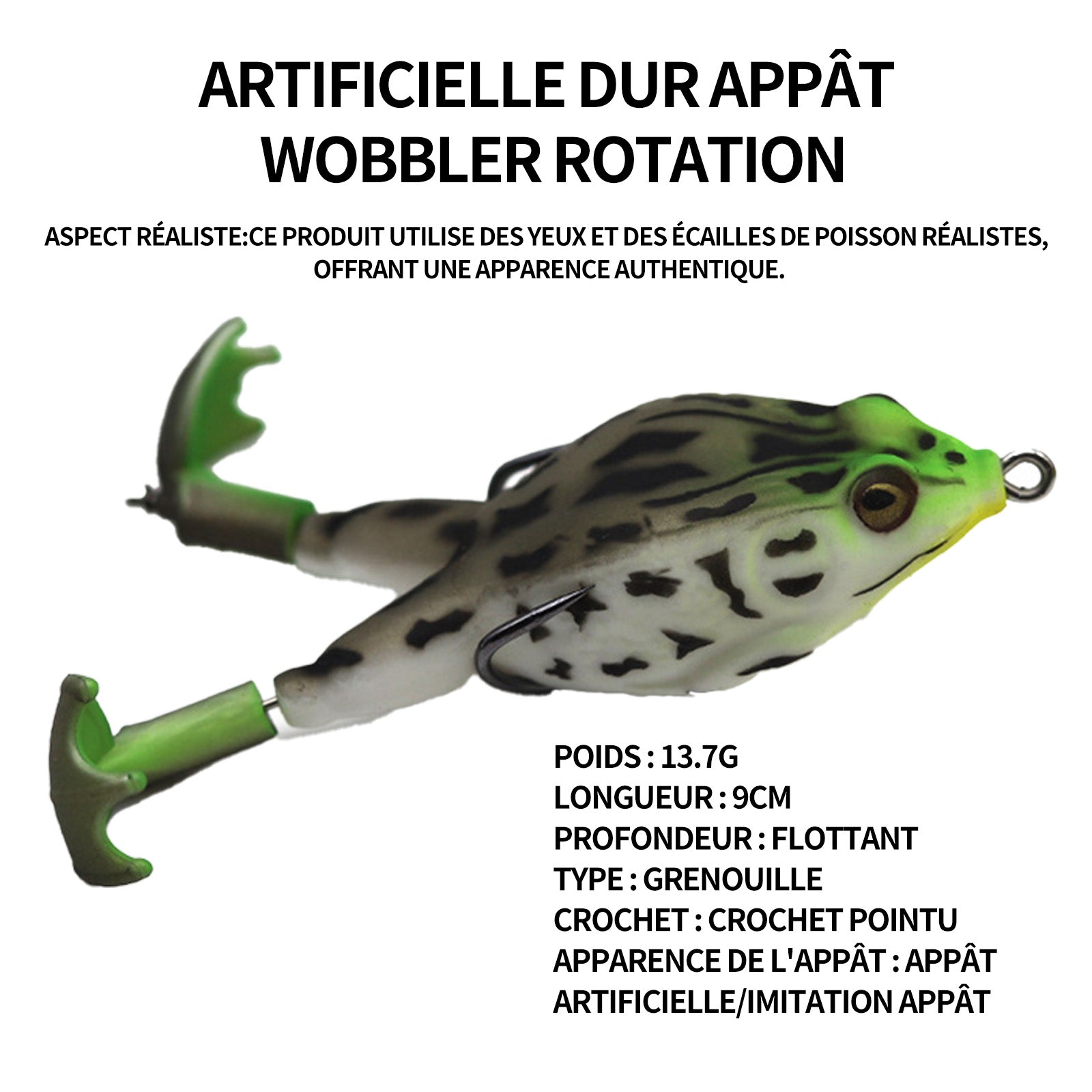 4. Type réaliste : En tant que leurre imitant une grenouille, ce leurre a été soigneusement conçu aussi bien en termes de forme que de mouvement, pour imiter le comportement naturel d'une vraie grenouille.