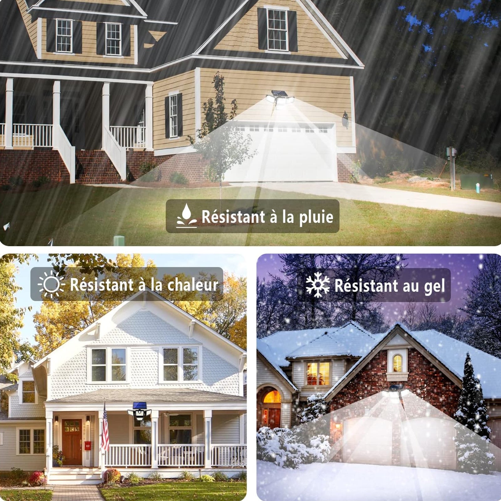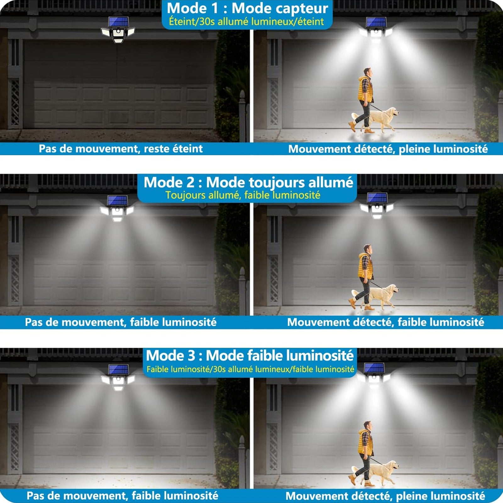 2 pcs Lampes solaires extérieures 333LED Lampes solaires extérieures Trois têtes Lumière solaire étanche IP65 Projecteur solaire