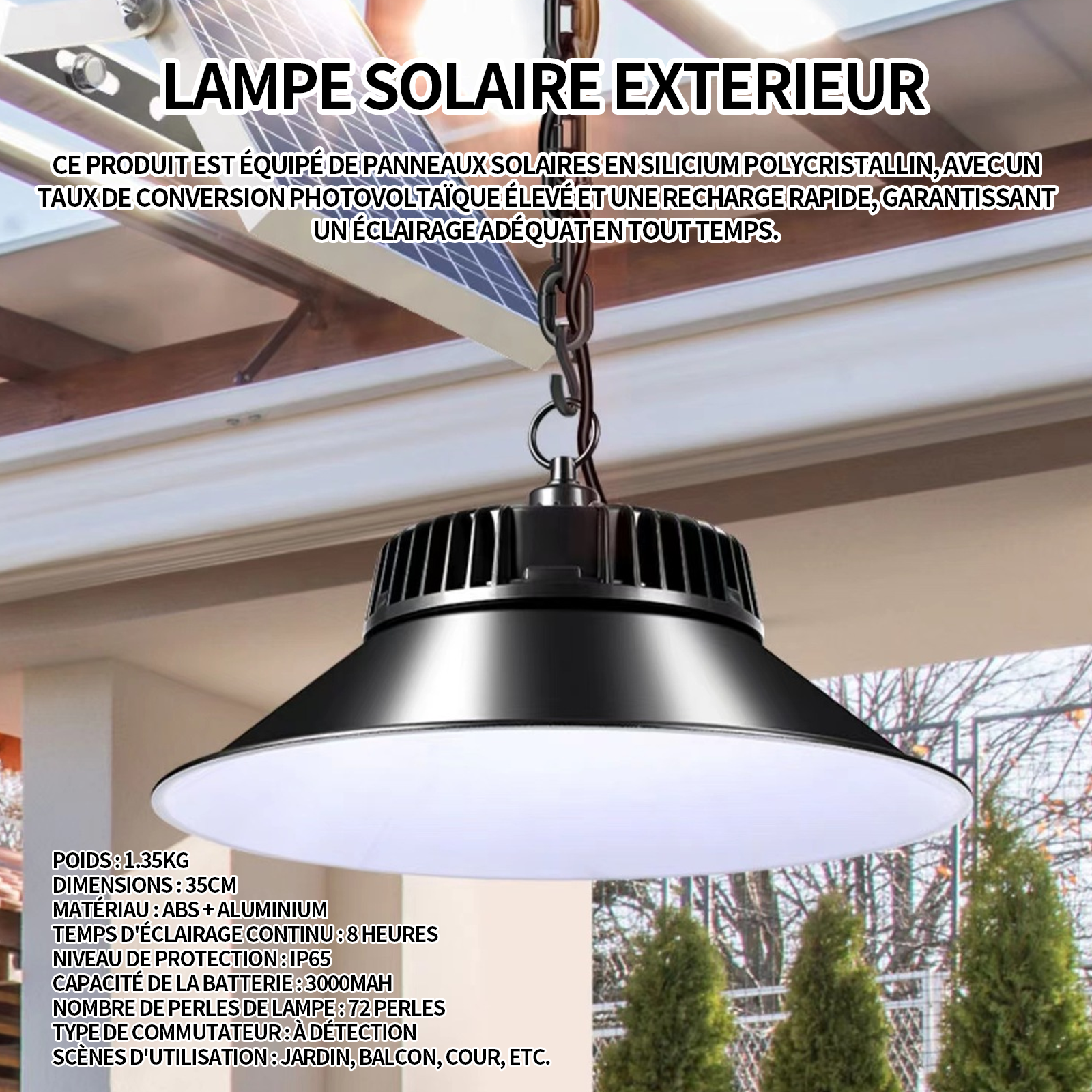 Lampe solaire 100W 3 modes luminosité de 72LED lampe solaire IP65 etanche lampes solaire pour jardin exterieur suspendue l