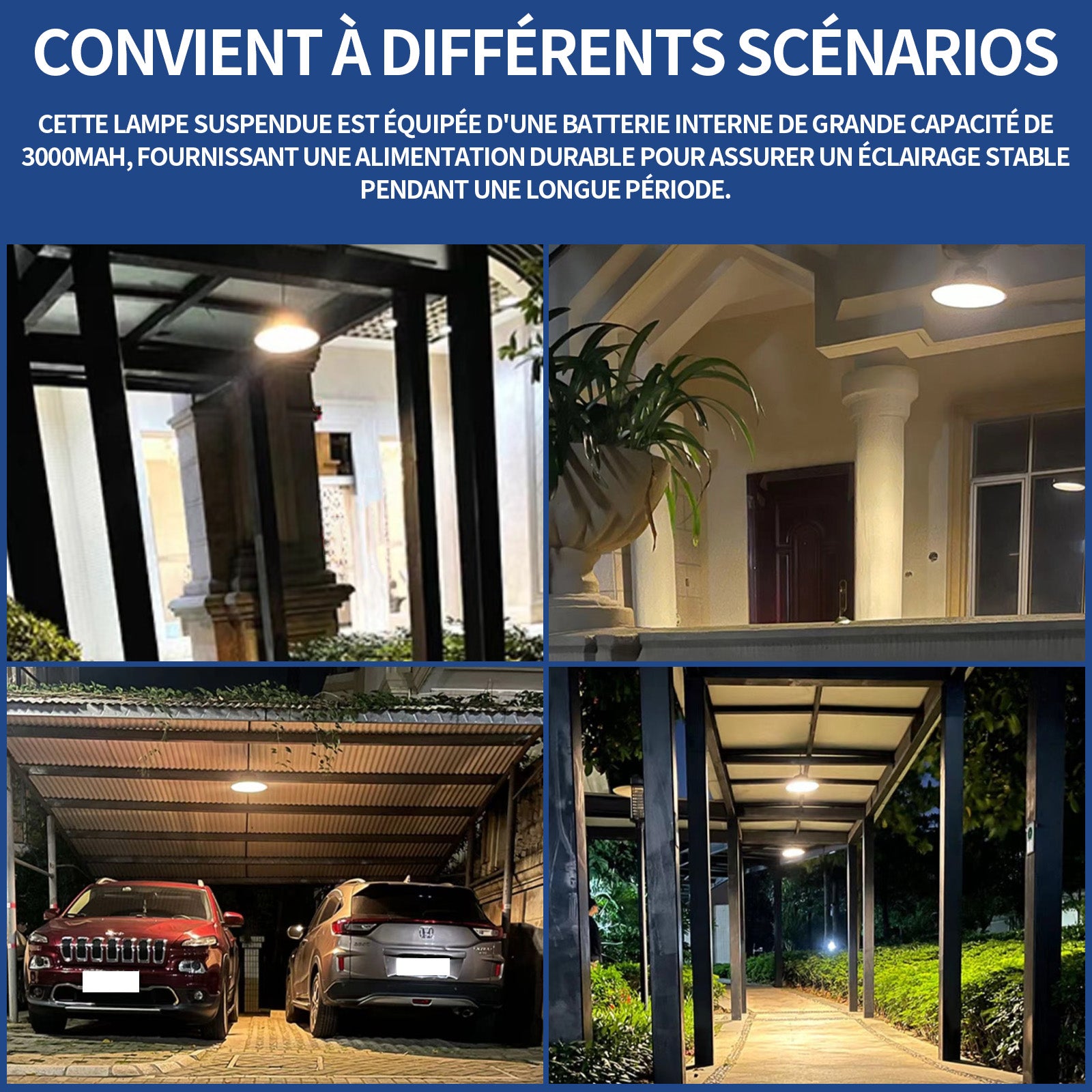 3. Batterie puissante : Cette lampe suspendue est équipée d'une batterie interne de grande capacité de 3000mAh, fournissant une alimentation durable pour assurer un éclairage stable pendant une longue période.
