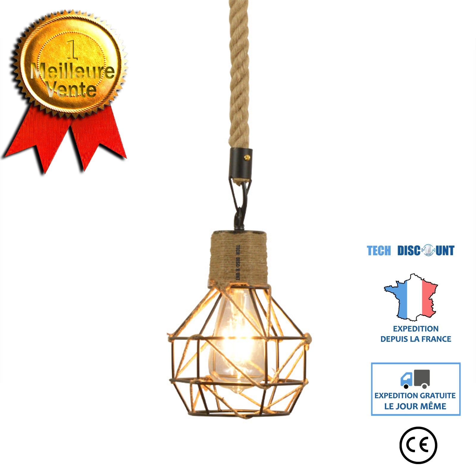 TD® Corde de chanvre rétro personnalité restaurant lustre industriel vent lustre café bar restaurant occidental petit lustre