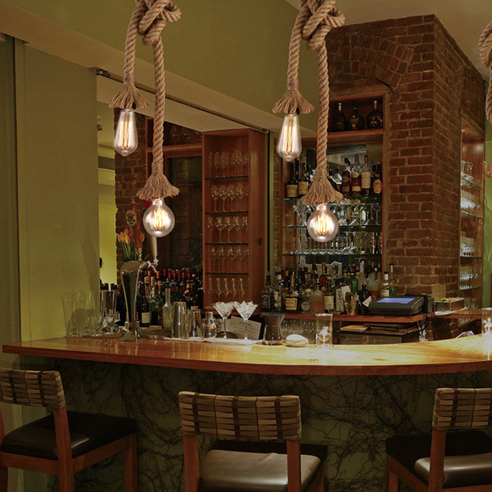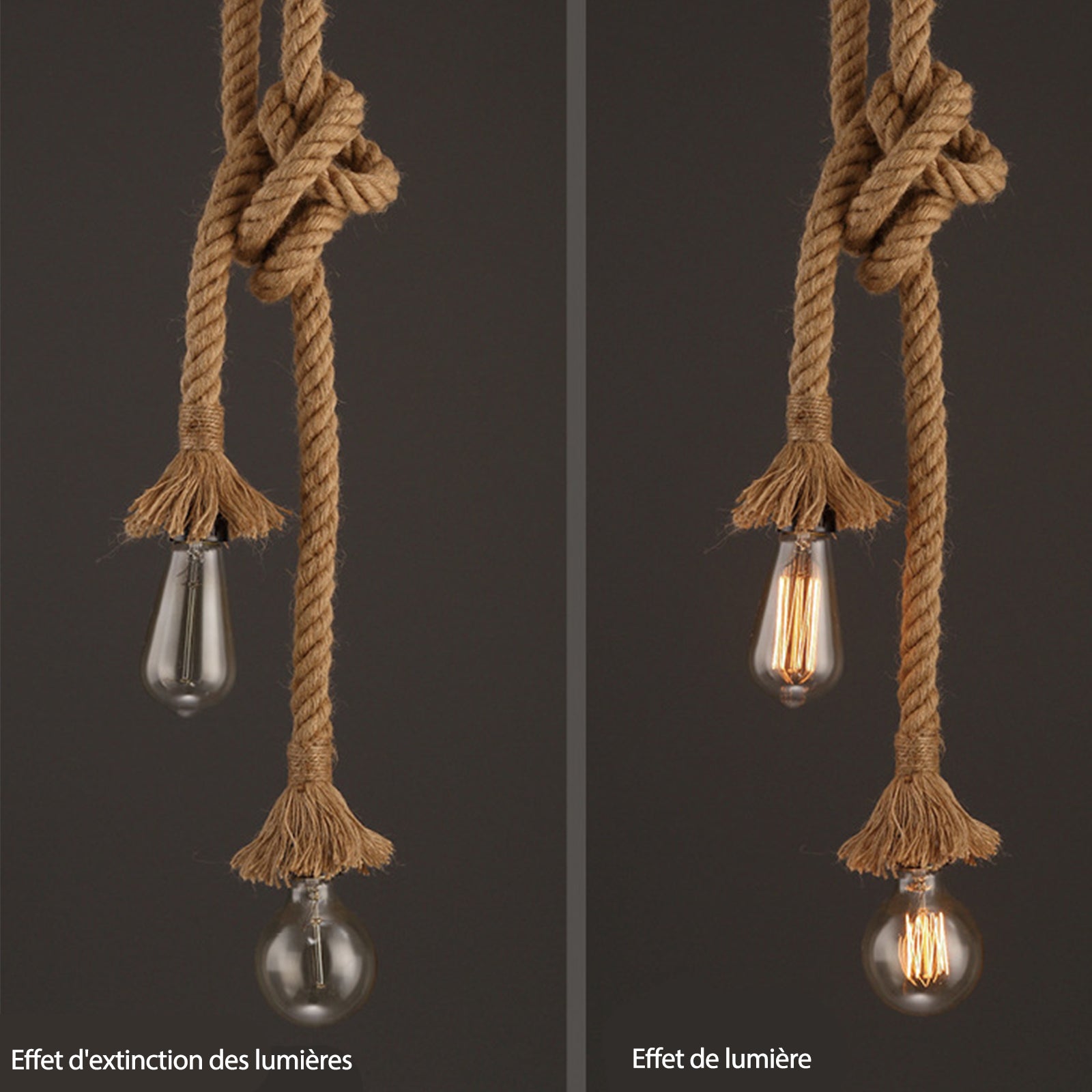 TD® Lustre en corde de chanvre Lustre de café Style de bar American Country Double Head Restaurant Lustre rétro