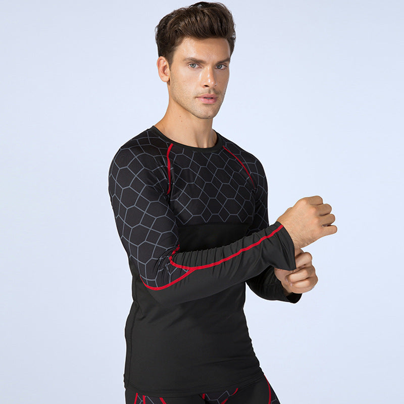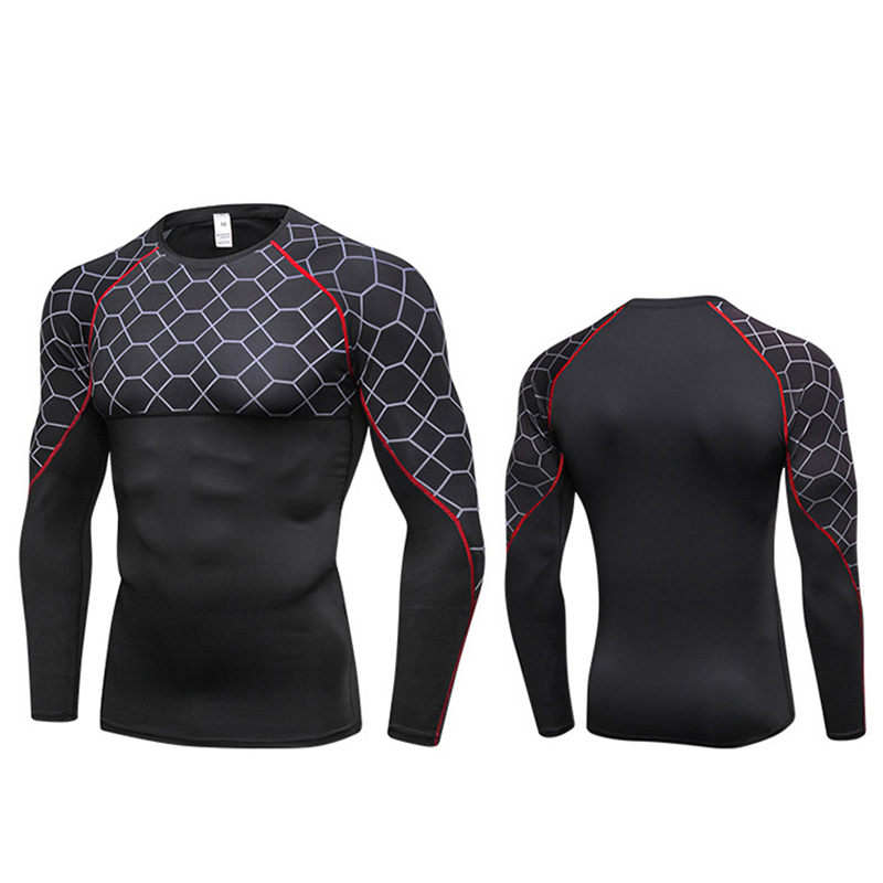 Fitness à manches longues pour hommes Fitness impression épissage à manches longues sport course entraînement transpiration s