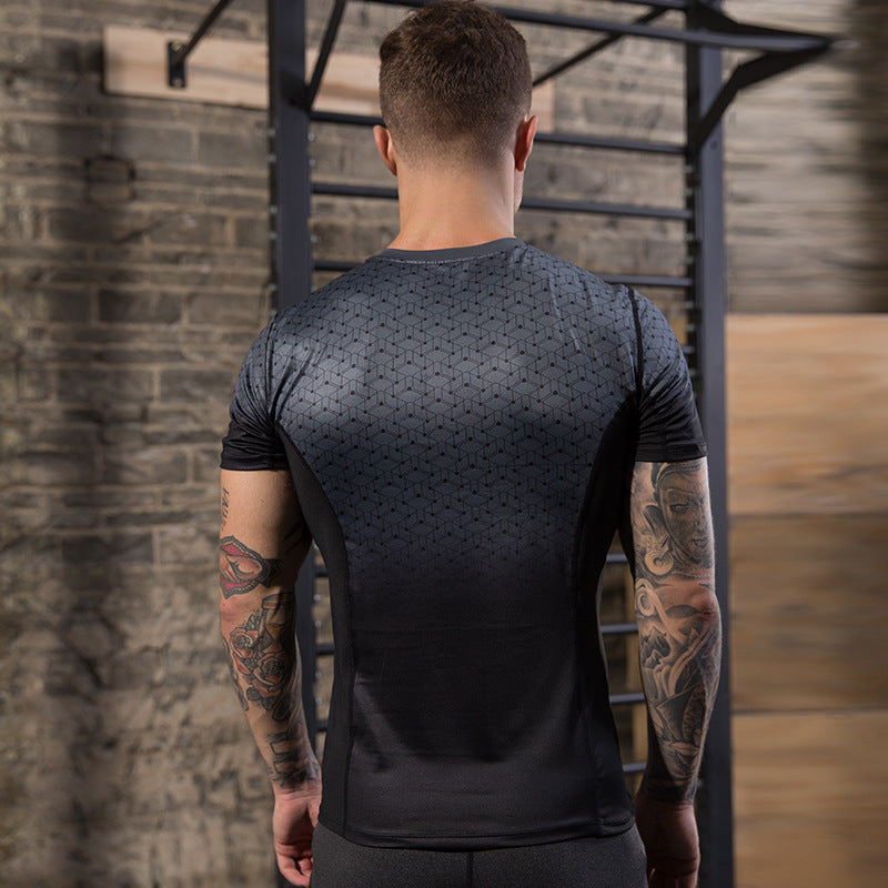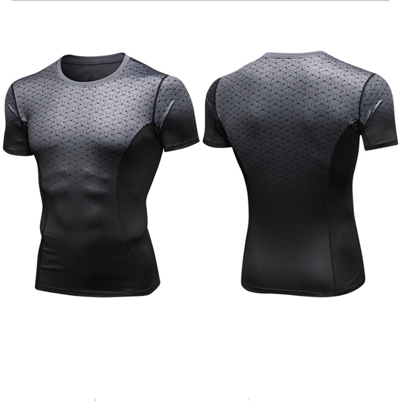 Manches courtes PRO Fitness pour hommes à manches courtes imprimé dégradé sport course à manches courtes haute élasticité à s