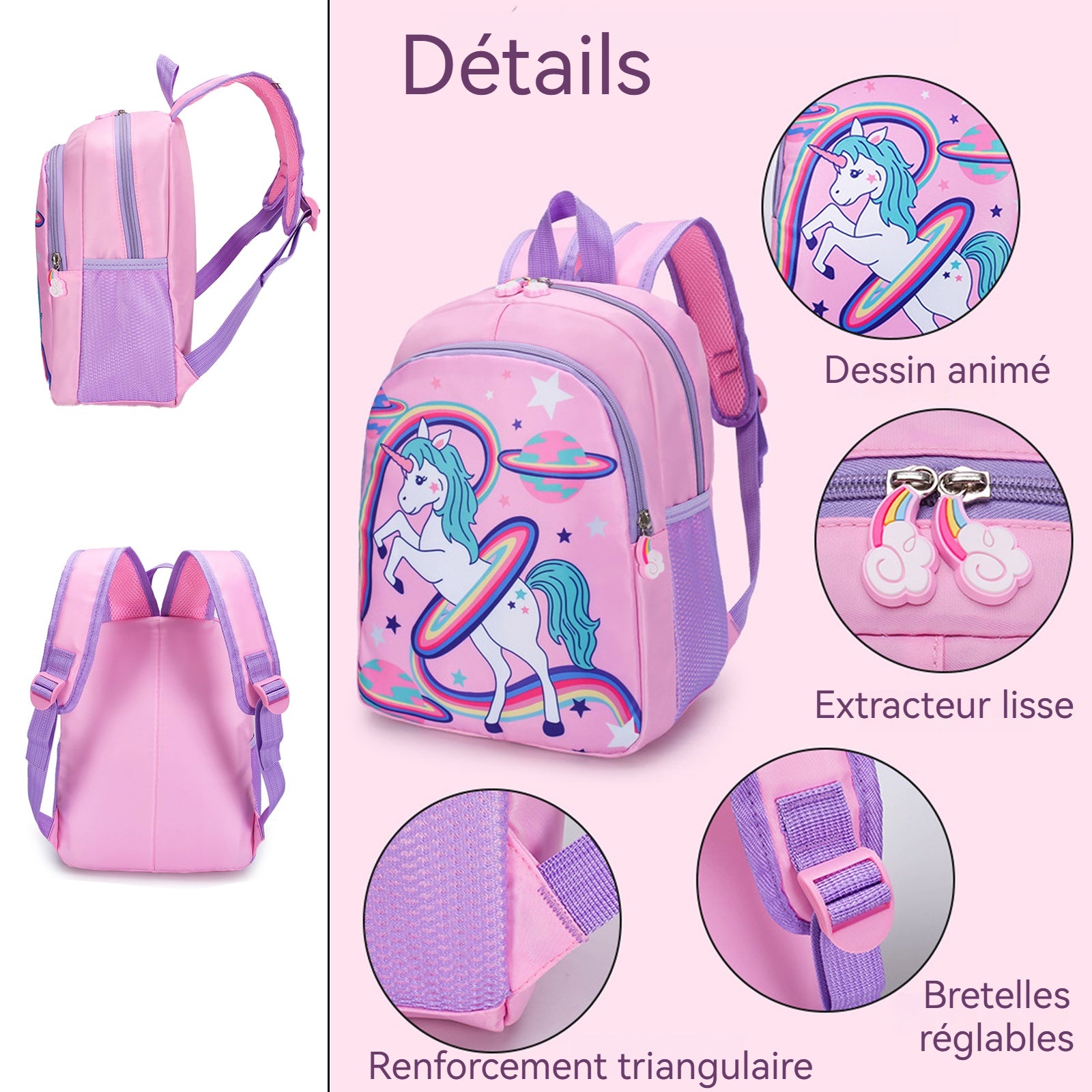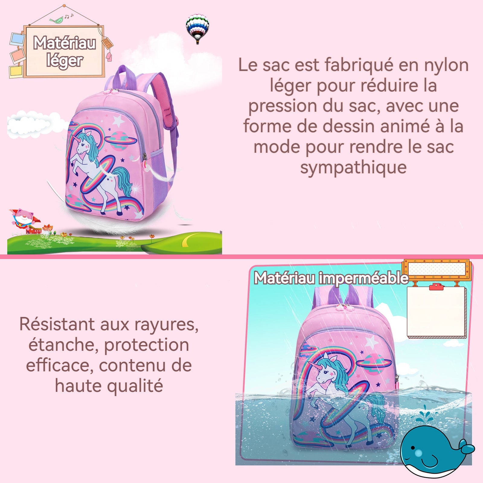 Sac à dos 25x32x10cm cartable enfant cartable fille léger grande capacité multi-compartiments sac à dos dessin animé design léger