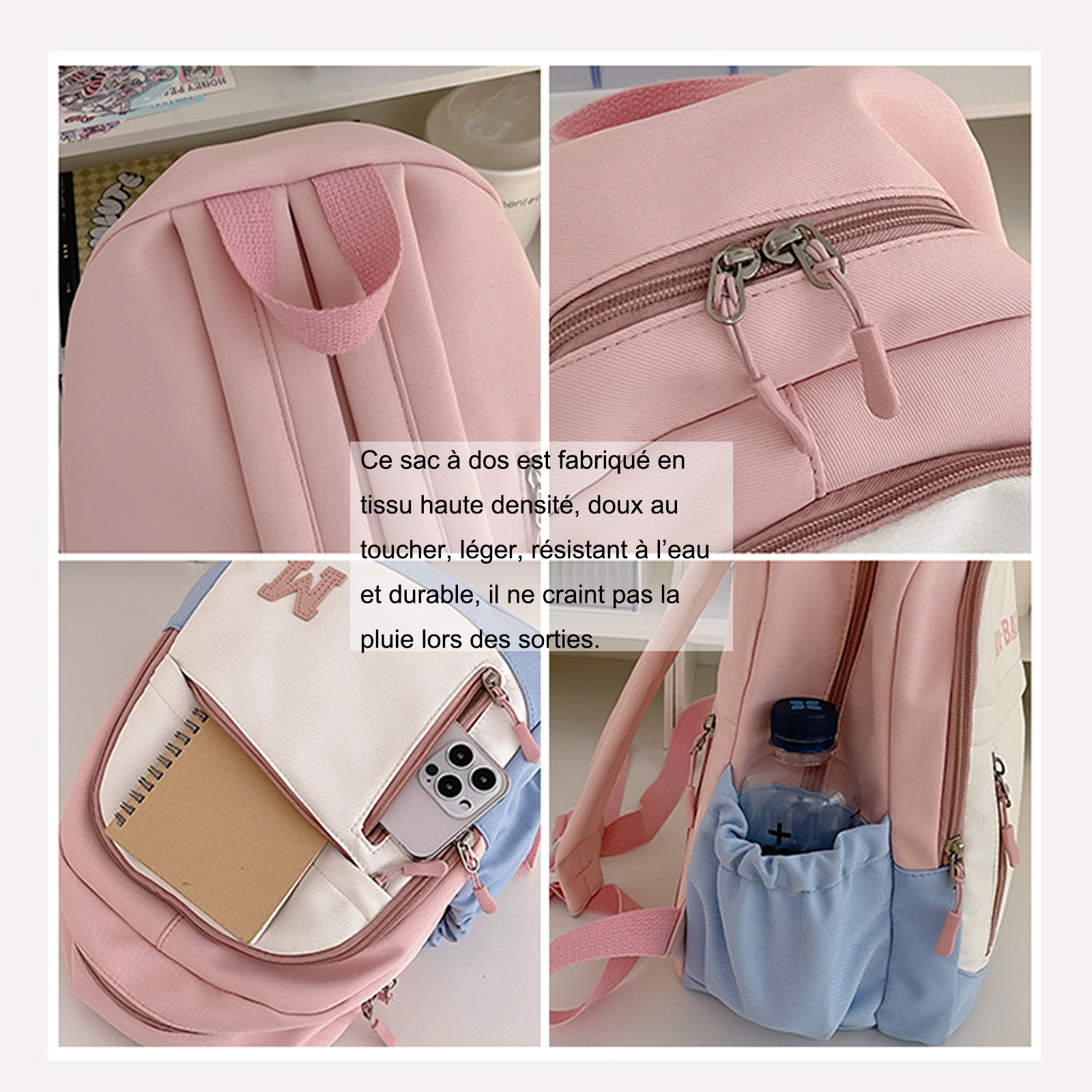2.Design élégant:La partie avant du sac à dos utilise un style de patchwork minimaliste, se mariant avec divers styles, idéal pour les photos et à partager sur les réseaux sociaux.