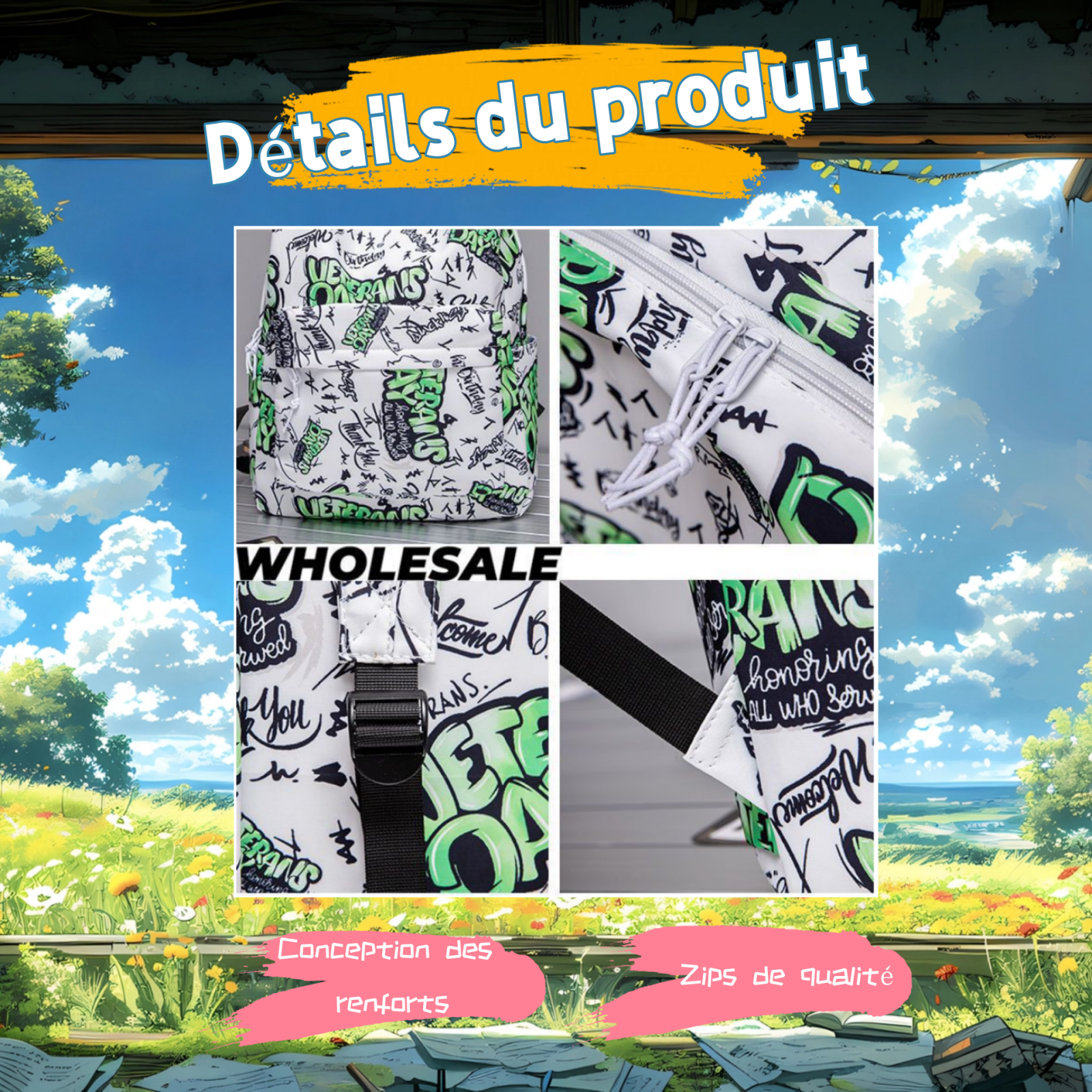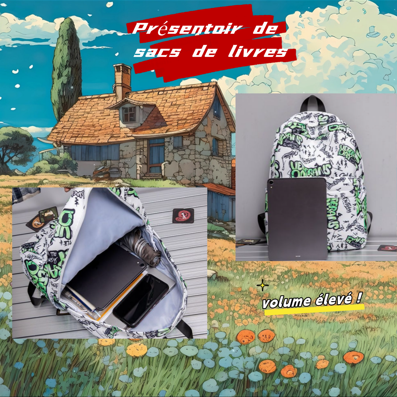 Sac à dos scolaire 42x32x14cm sacs à dos polyvalents graffiti de grande valeur à la mode et de style universitaire tendance cartable