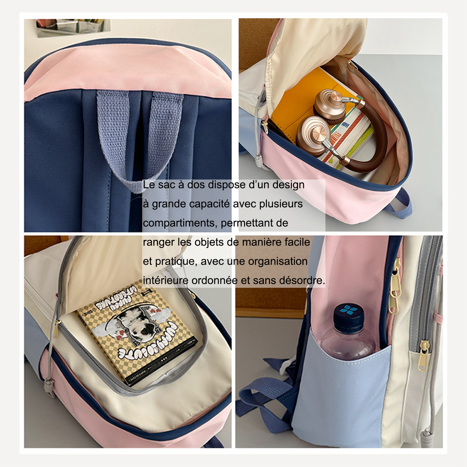 4.Grande capacité:Le sac à dos possède un grand volume et un design à plusieurs compartiments, facilitant le rangement des objets avec une organisation claire et ordonnée à l'intérieur.