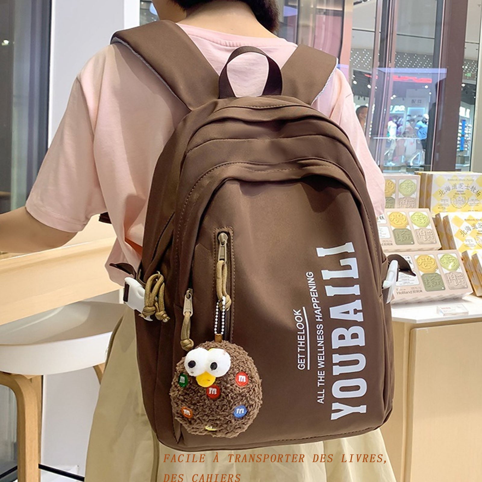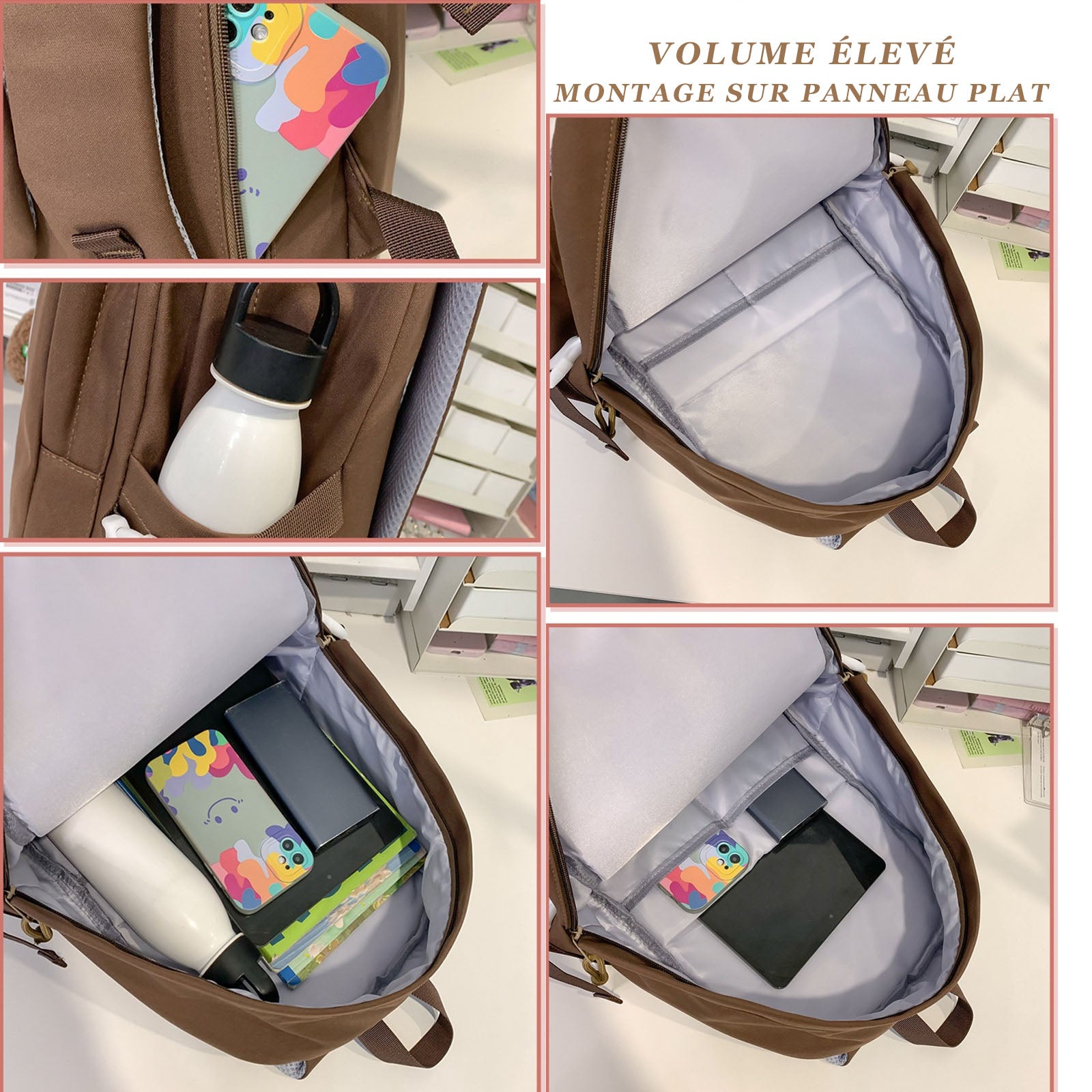 Sac à dos scolaire 44x30x15cm sac d'école japonais étudiants grande capacité ordinateur sac à dos de voyage campus marron cartable