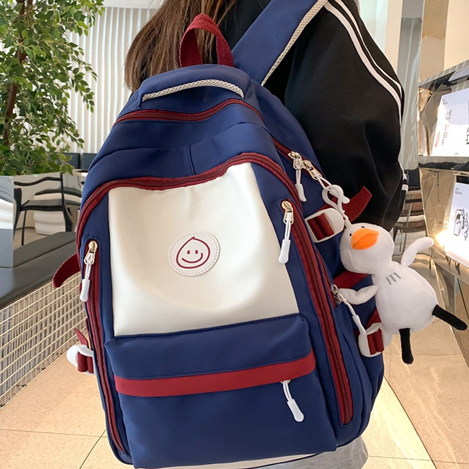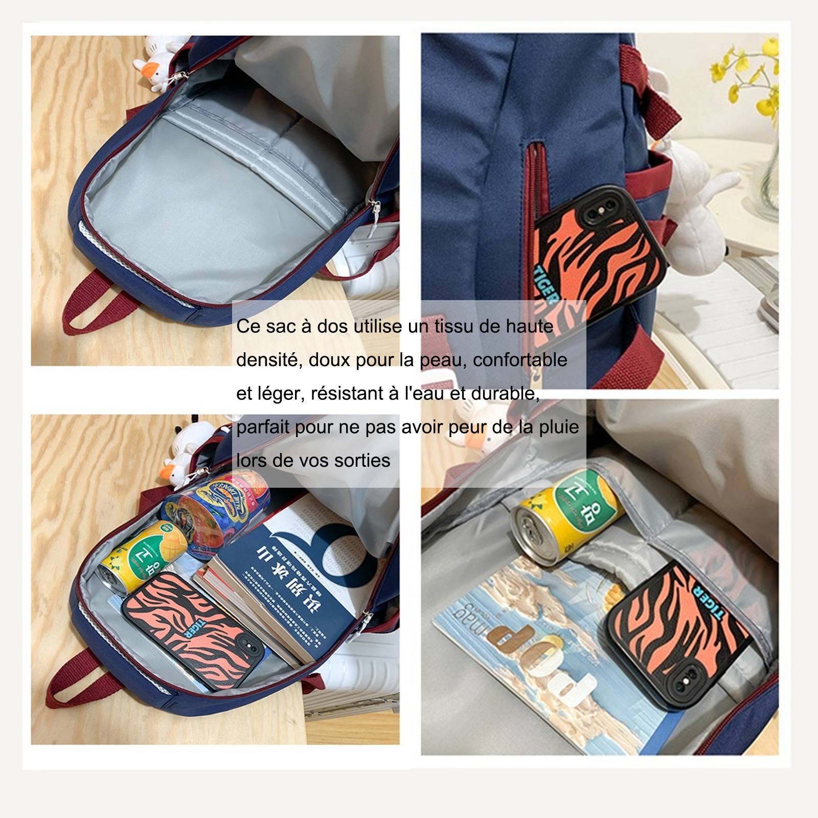 Sac à dos scolaire 45x30x17cm trendy hundred large capacity backpack campus fashion clash of colours casual schoolbag cartable