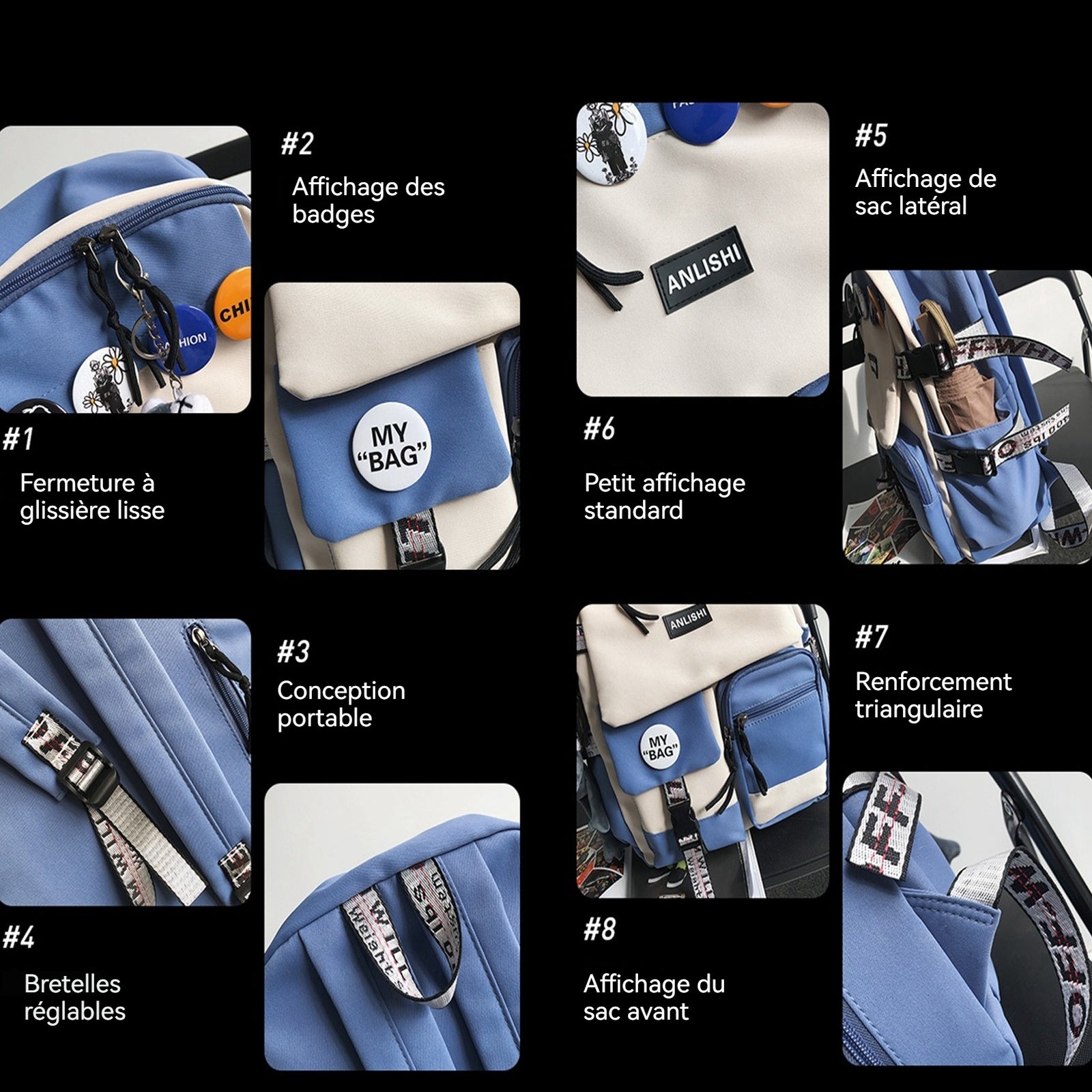 2.Design à la mode:La partie avant du sac à dos utilise un style de patchwork bicolore, pouvant s'associer à divers styles. Ce sac à dos est parfait pour les photos et à partager sur les réseaux sociaux.
