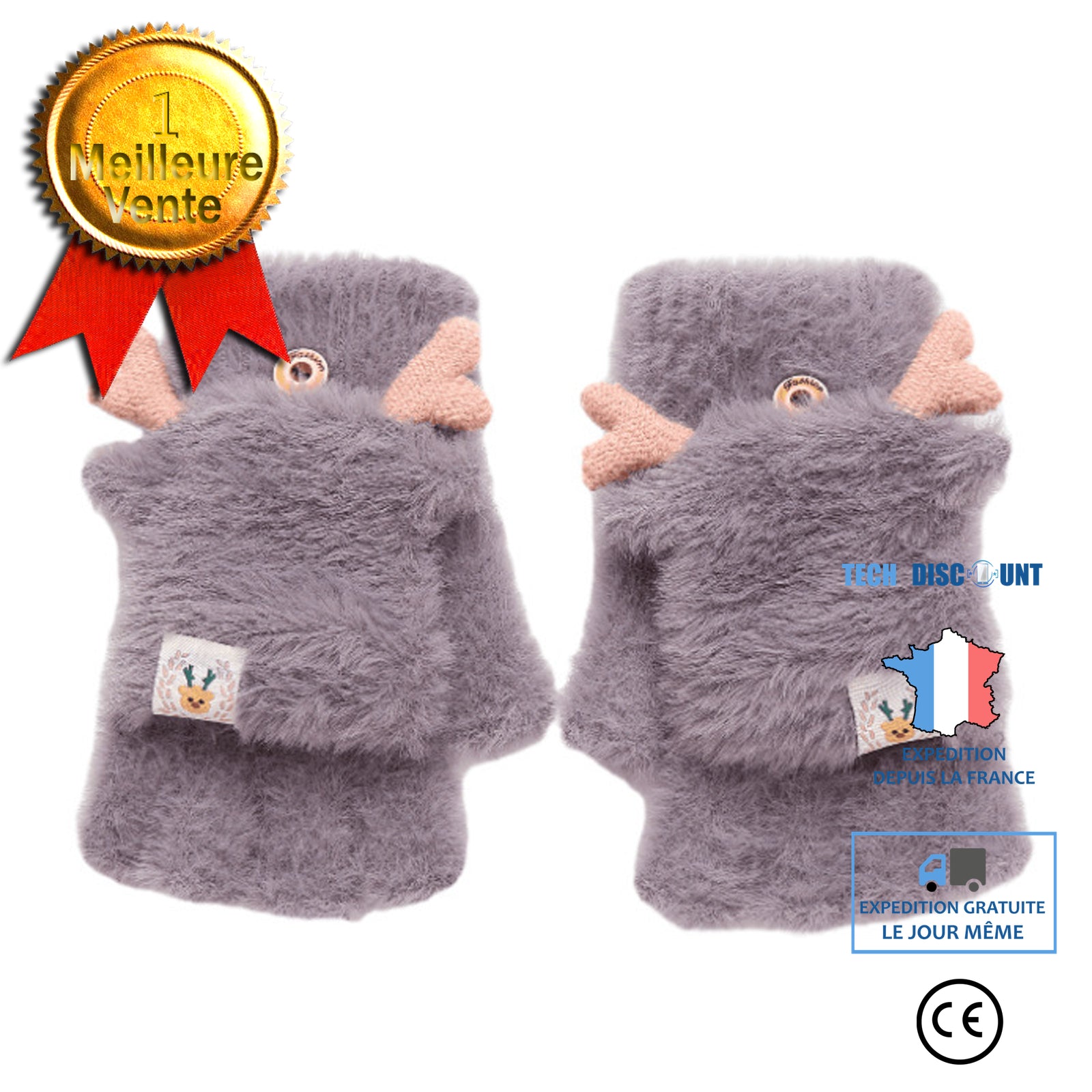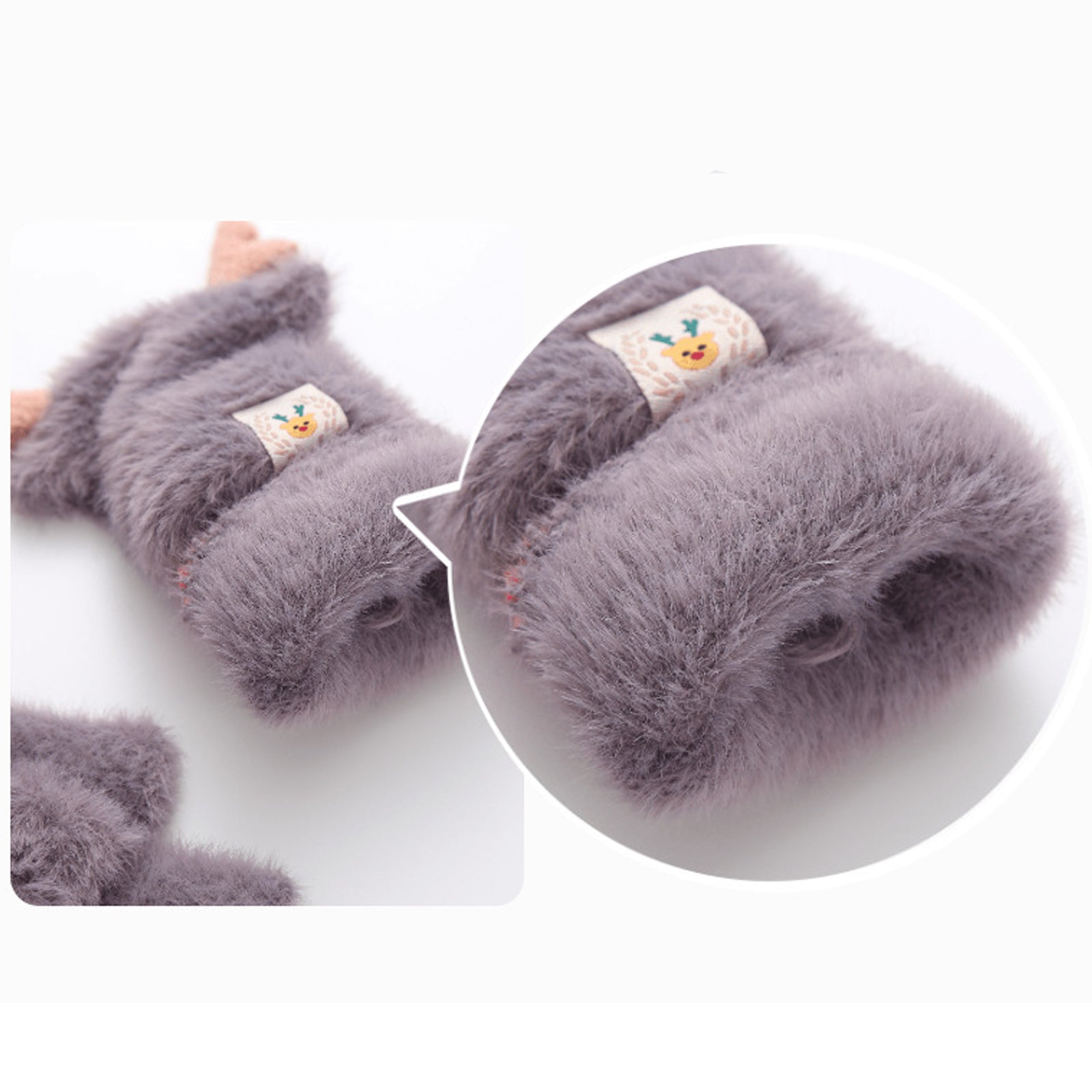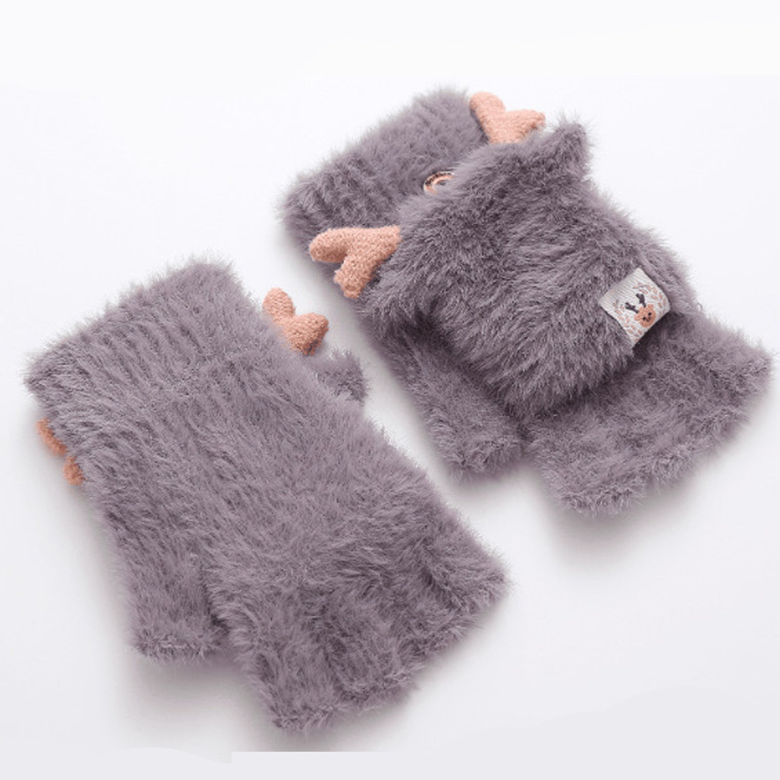TD® Hiver Noël Elk Antlers Gants de Bande Dessinée Femelle Vison Velours Étudiant Écriture Fingerless Flip Gants Chauds
