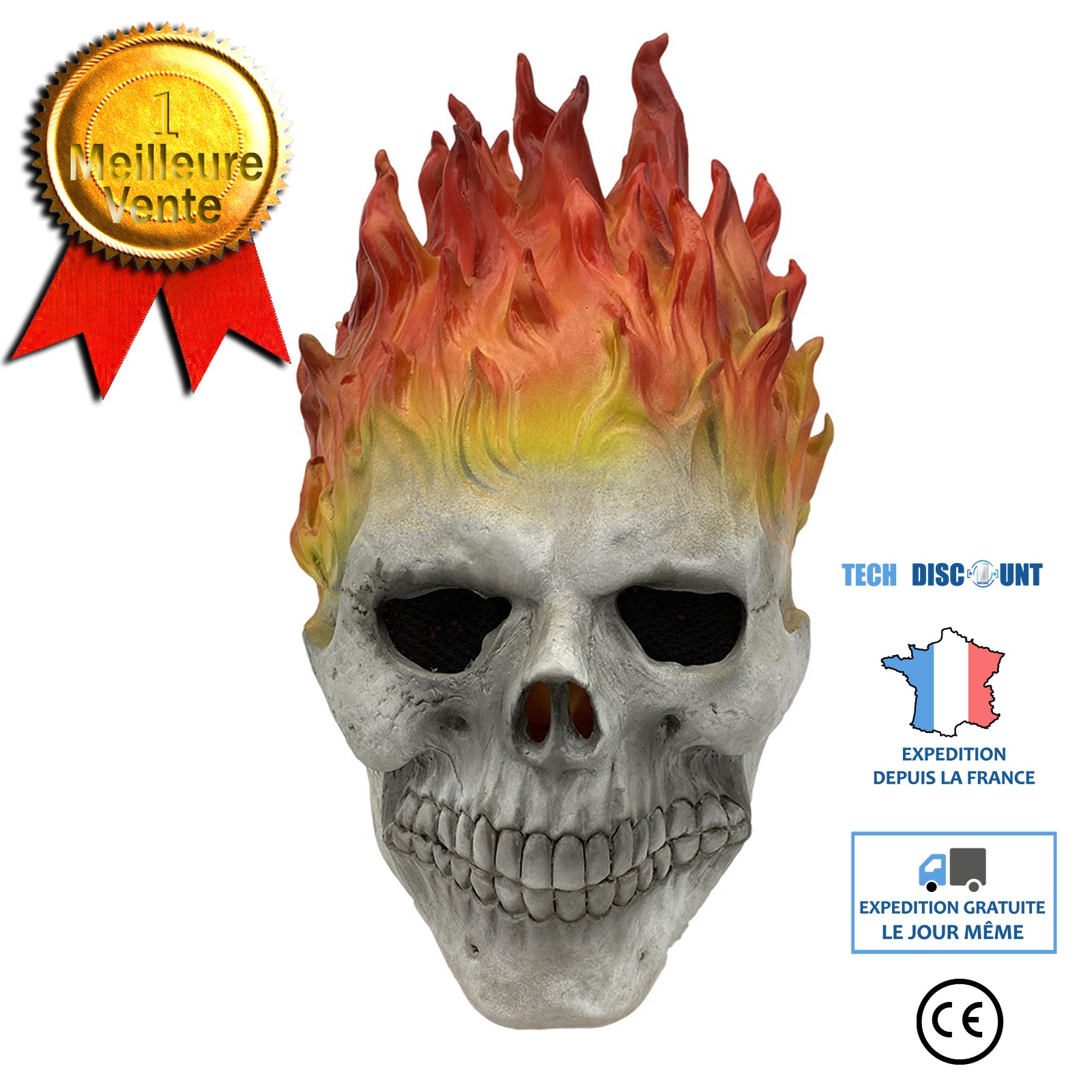 TD® Halloween Crâne Masque Ghost Rider Fantôme Visage Couvre-chef Effrayant Flamme Crâne Latex Réaliste Look Party Party