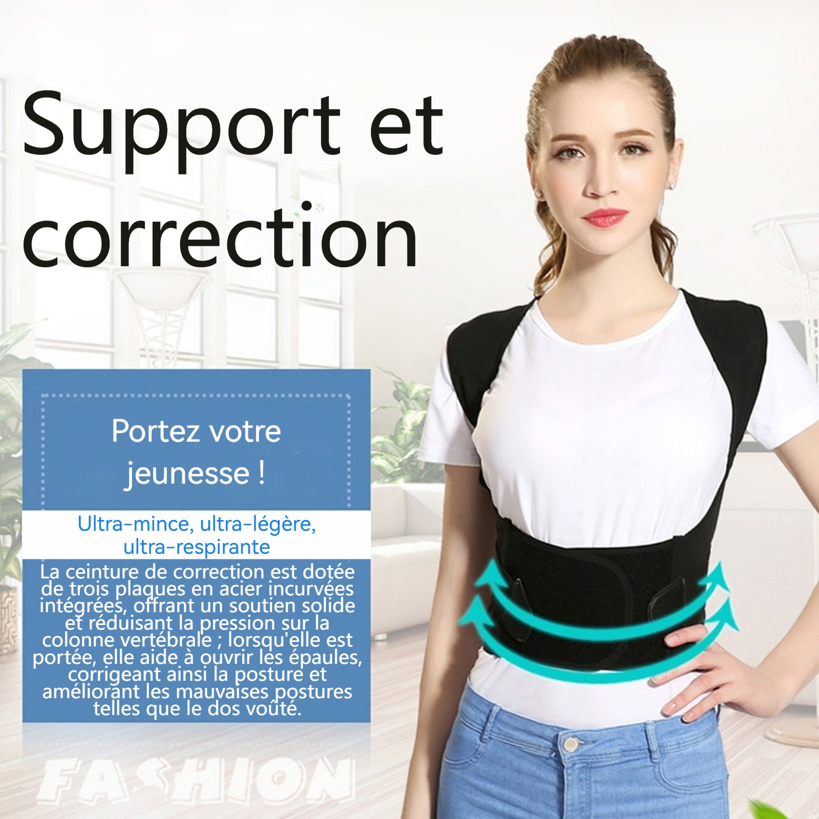 4. Support et correction : La ceinture de correction est dotée de trois plaques en acier incurvées intégrées, offrant un soutien solide et réduisant la pression sur la colonne vertébrale ; lorsqu'elle est portée, elle aide à ouvrir les épaules, corrigeant ainsi la posture et améliorant les mauvaises postures telles que le dos voûté.