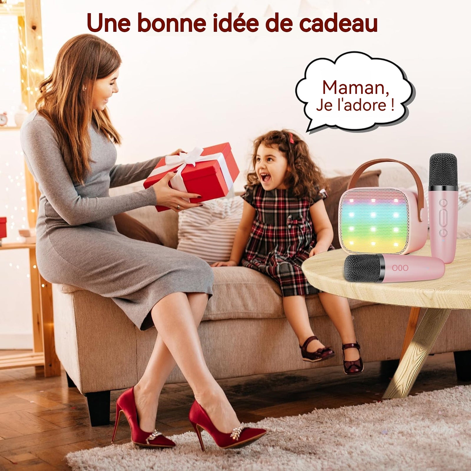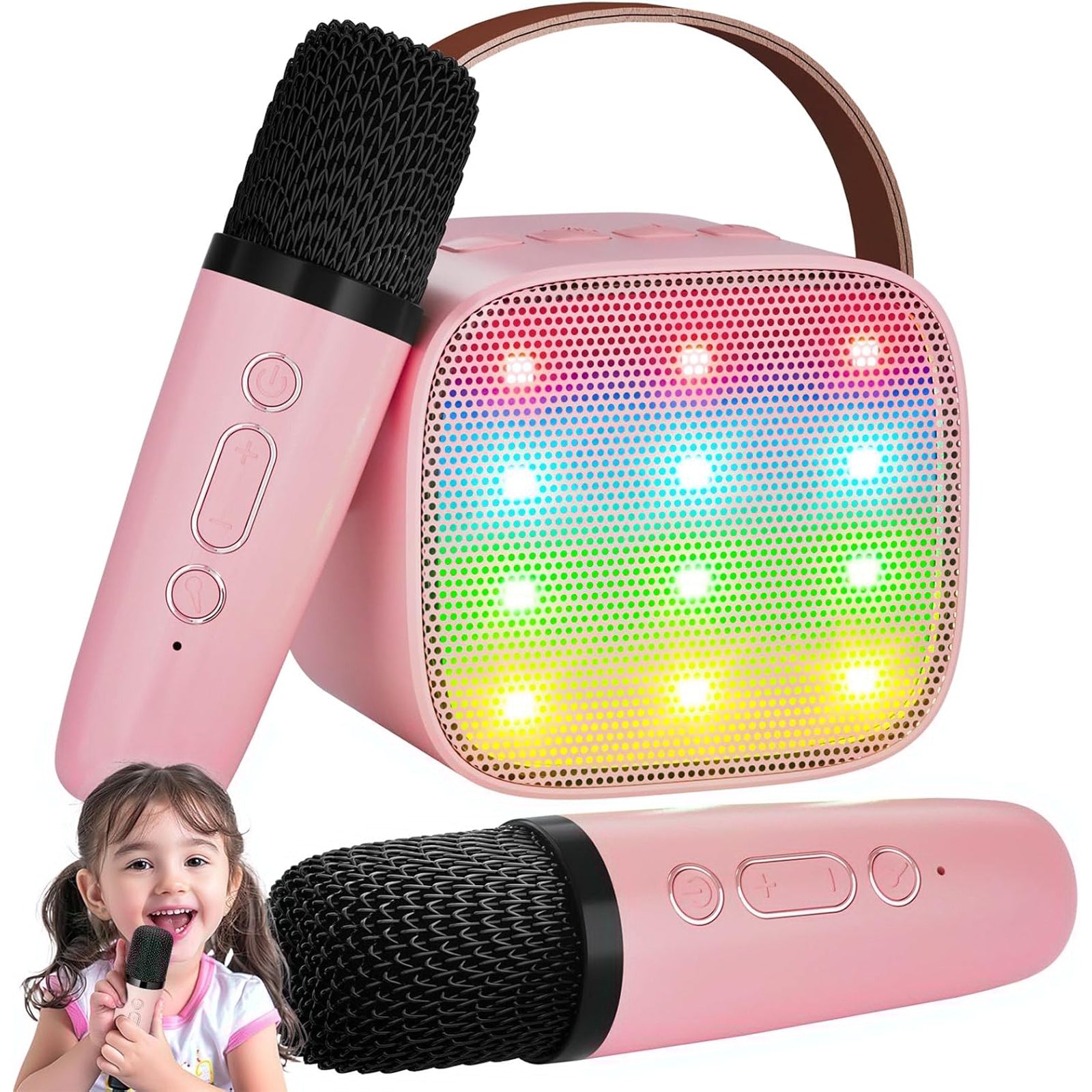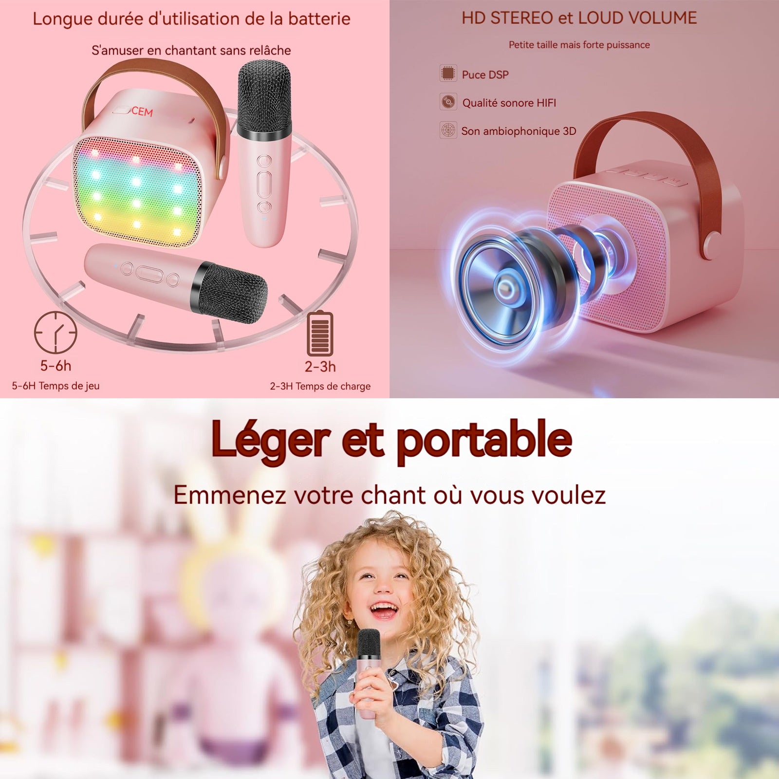 Machine de karaoké 800mah bluetooth 5,0 micro karaoke enfant avec 2 microphones lumière LED et effets de changement de voix rose