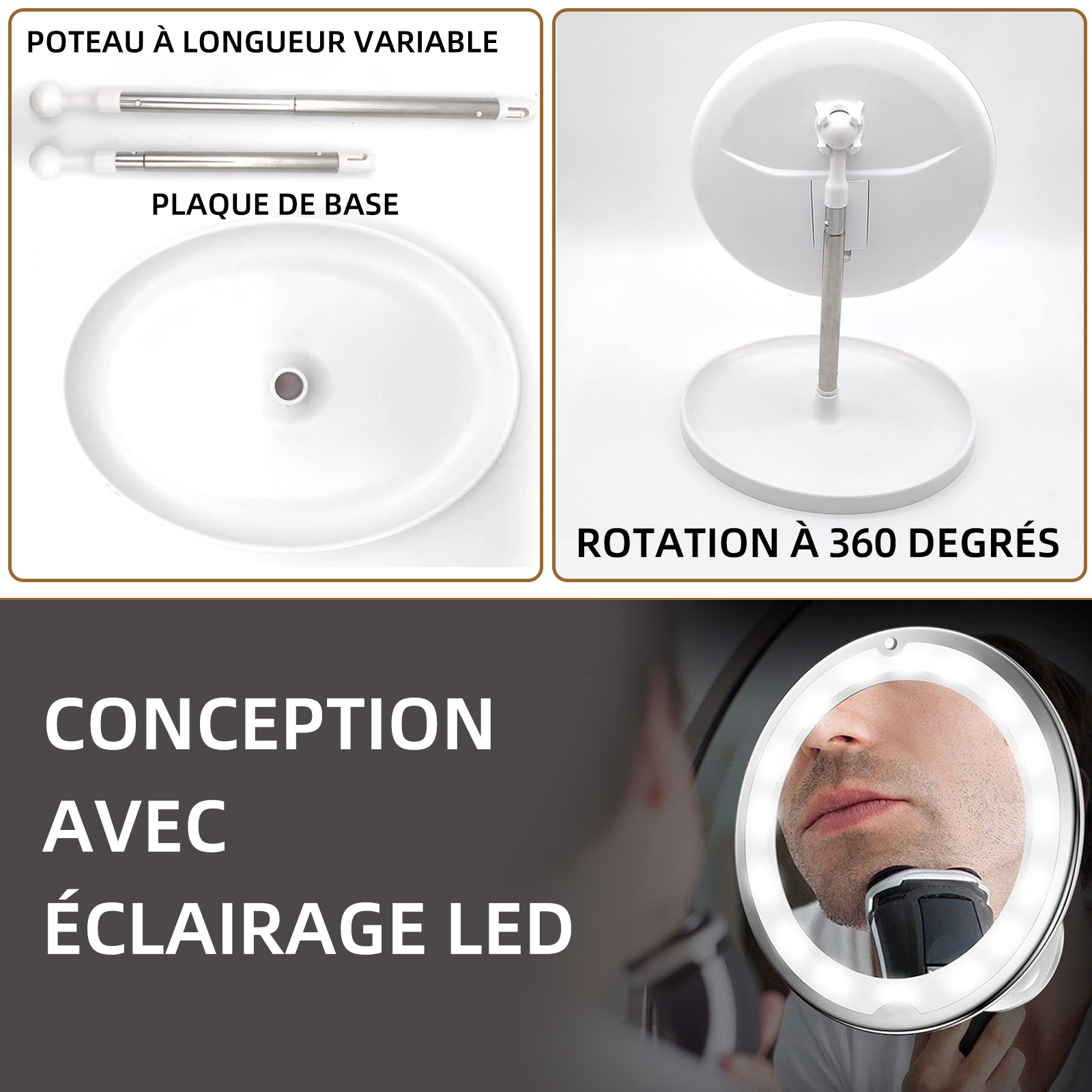 Miroir grossissant 20cm Diamètre pivotant à 360 degrés grossissement 10x fixation pliable murale miroir maquillage avec lumière