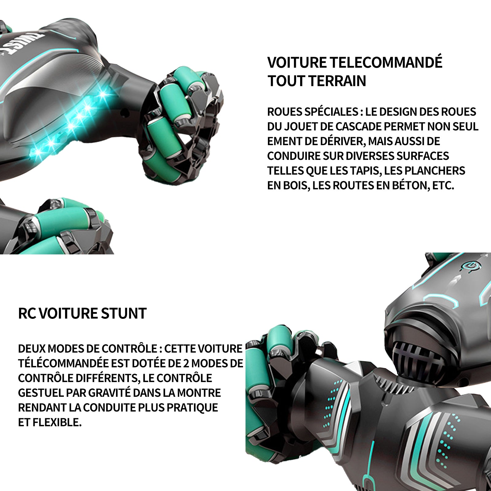 Voiture télécommandée 2,4ghz enfant rc voiture stunt avec contrôle gestuel musique et led jouet enfant cadeau pour filles garçons