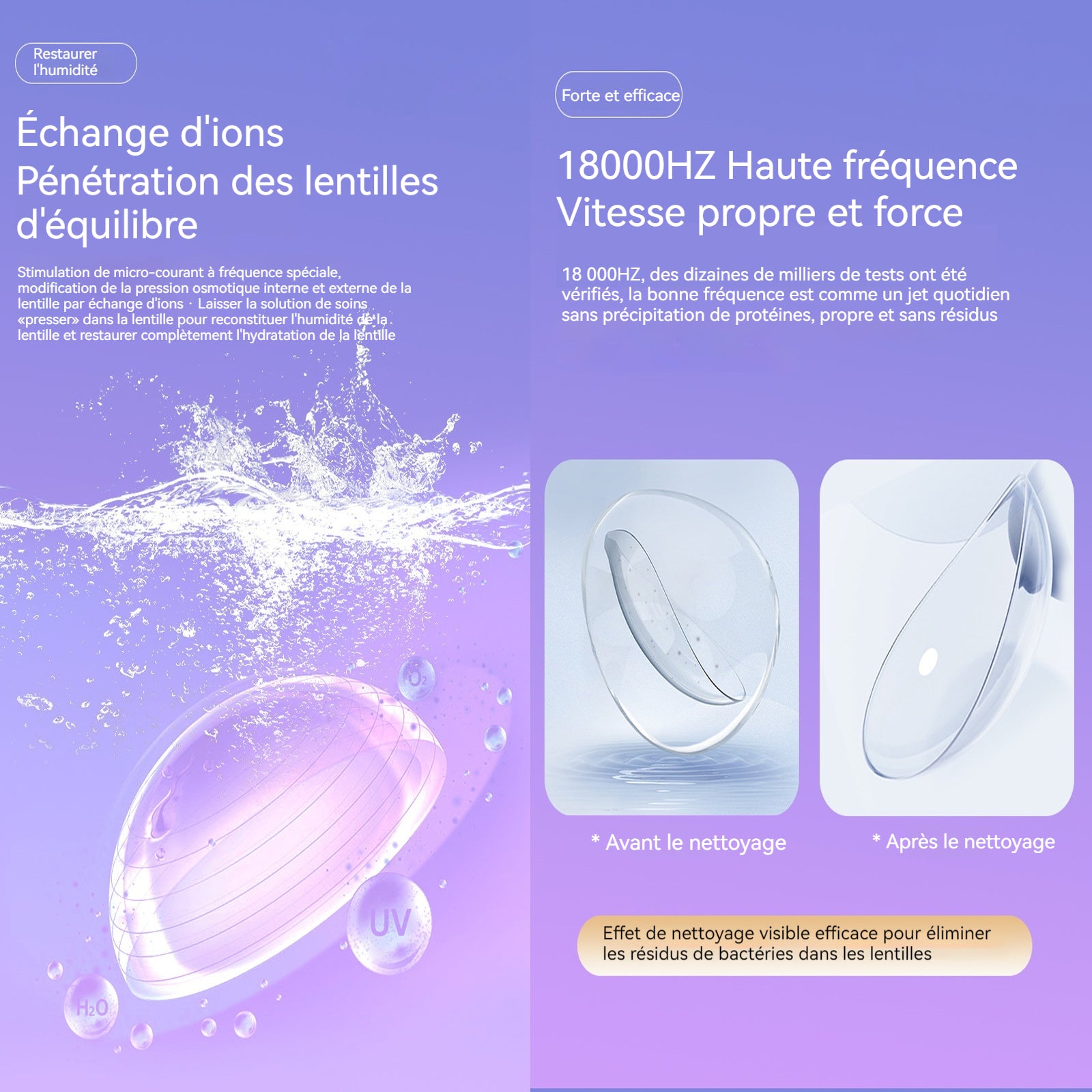 4. Nettoyage complet : Ce nettoyeur peut nettoyer à 360 degrés, sa puissance intense restaure la propreté et la transparence des lentilles de contact.