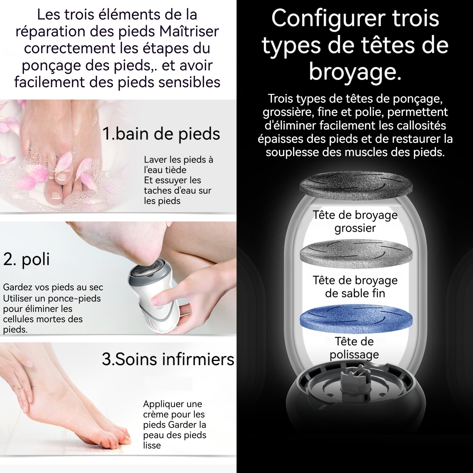 4. Expérience efficace : Ce râpeur de pieds a une puissance nominale de 2,5 W, capable d'éliminer efficacement les callosités et les peaux mortes, maintenant les pieds lisses et délicats, tout en améliorant le confort.