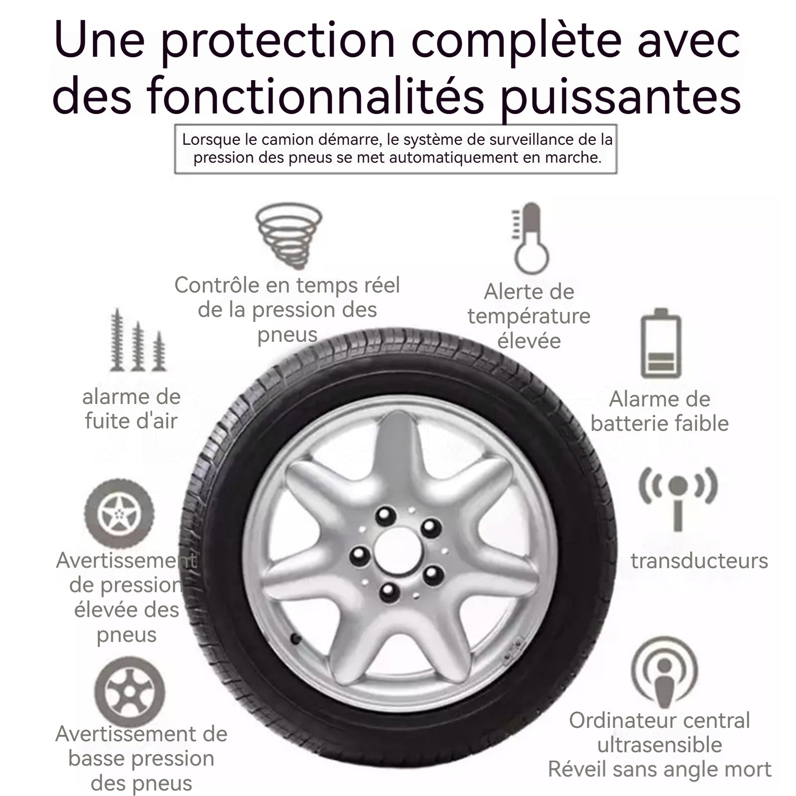 2. Surveillance en temps réel : Ce moniteur de pression des pneus surveille en temps réel la pression et la température des pneus, et émet automatiquement une alarme en cas d'anomalie, aidant ainsi le conducteur à réagir rapidement et à améliorer la sécurité routière.