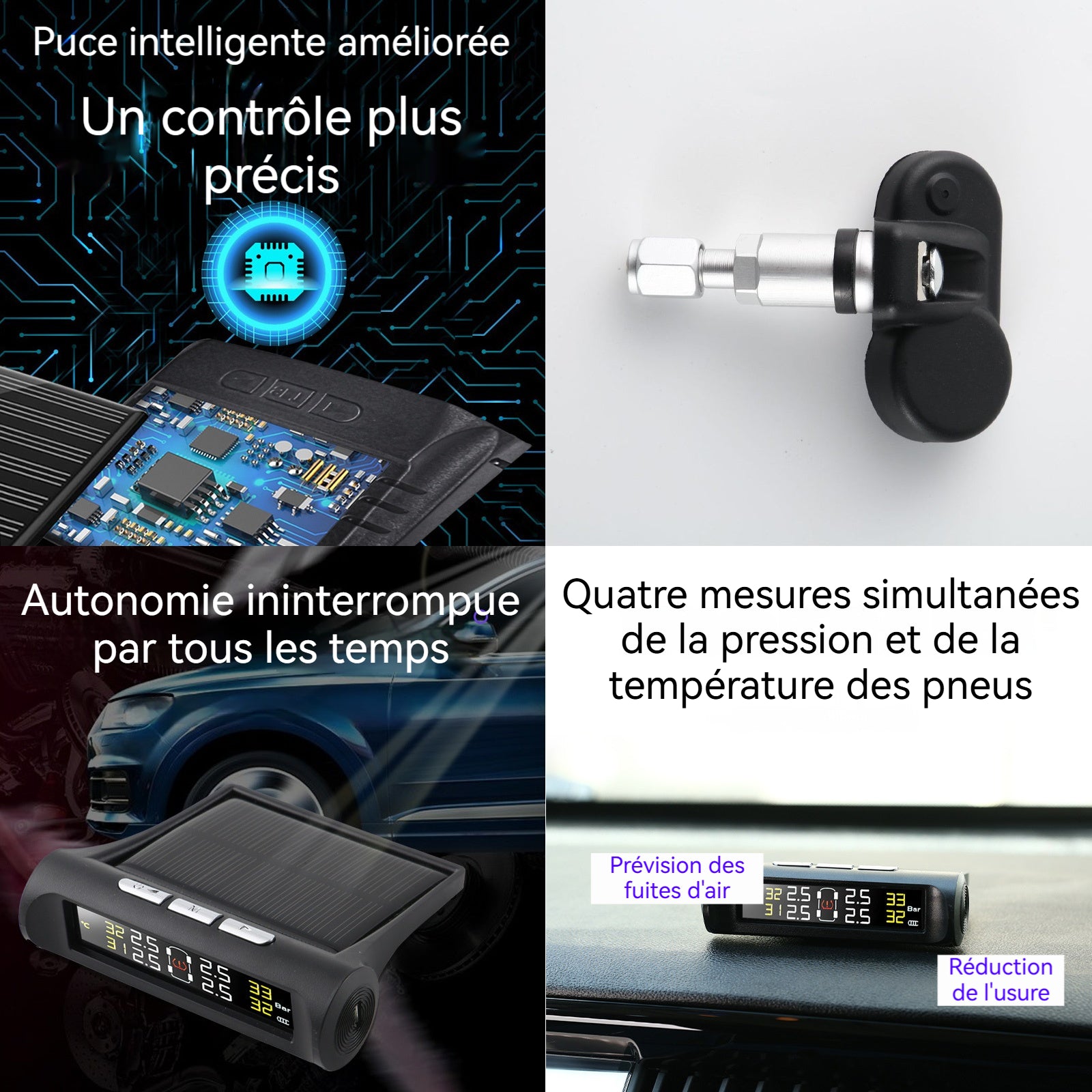 Surveillance de la pression des pneus solaire pour voiture TPMS écran couleur moniteur en temps réel de pression et de température