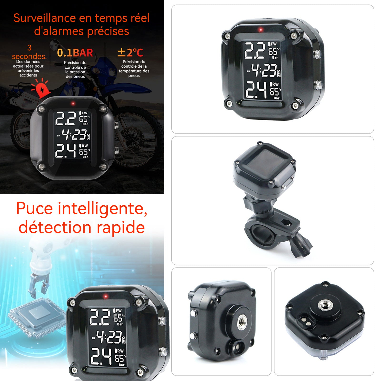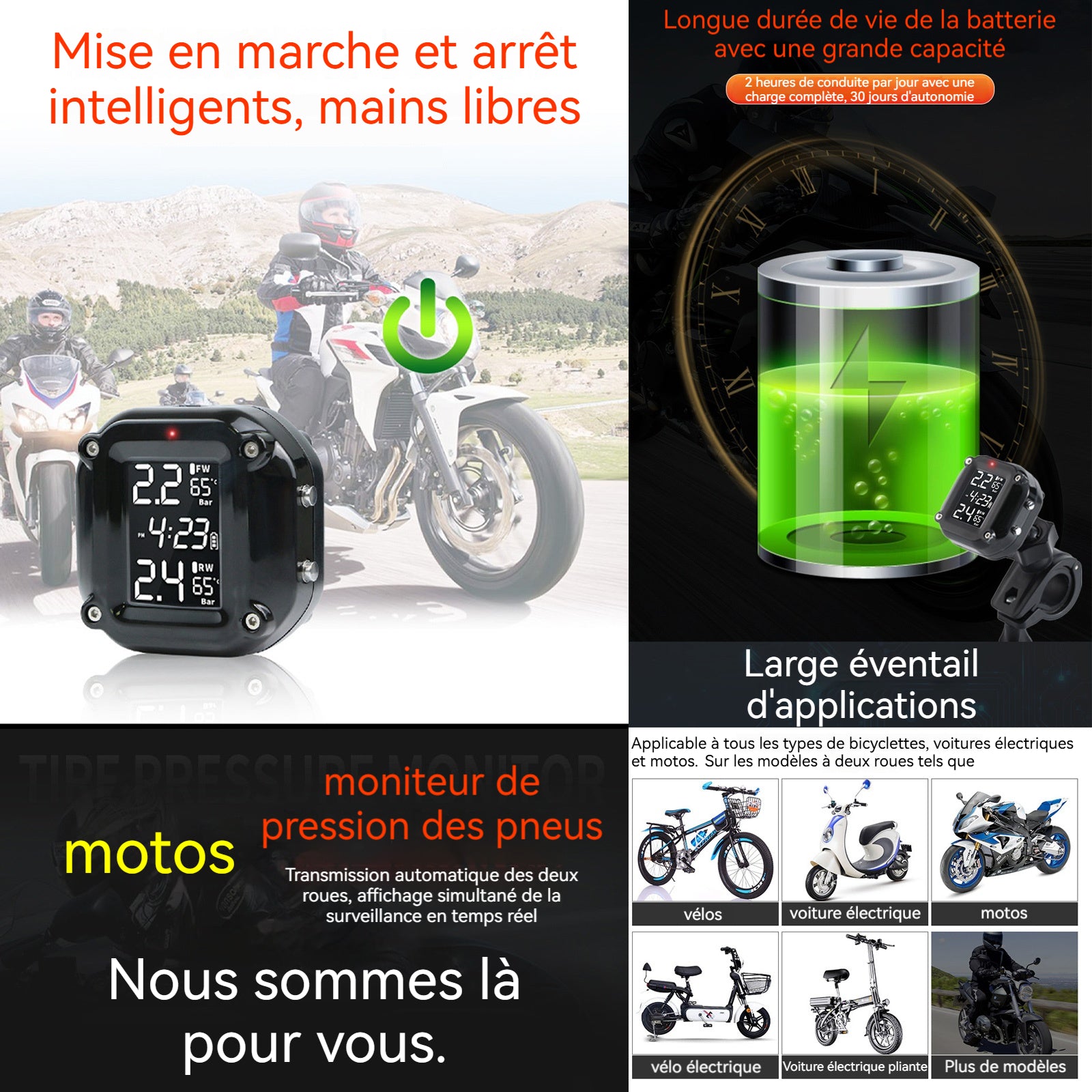 Système de surveillance de la pression des pneus pour moto sans fil étanche moniteur en temps réel de pression et de température